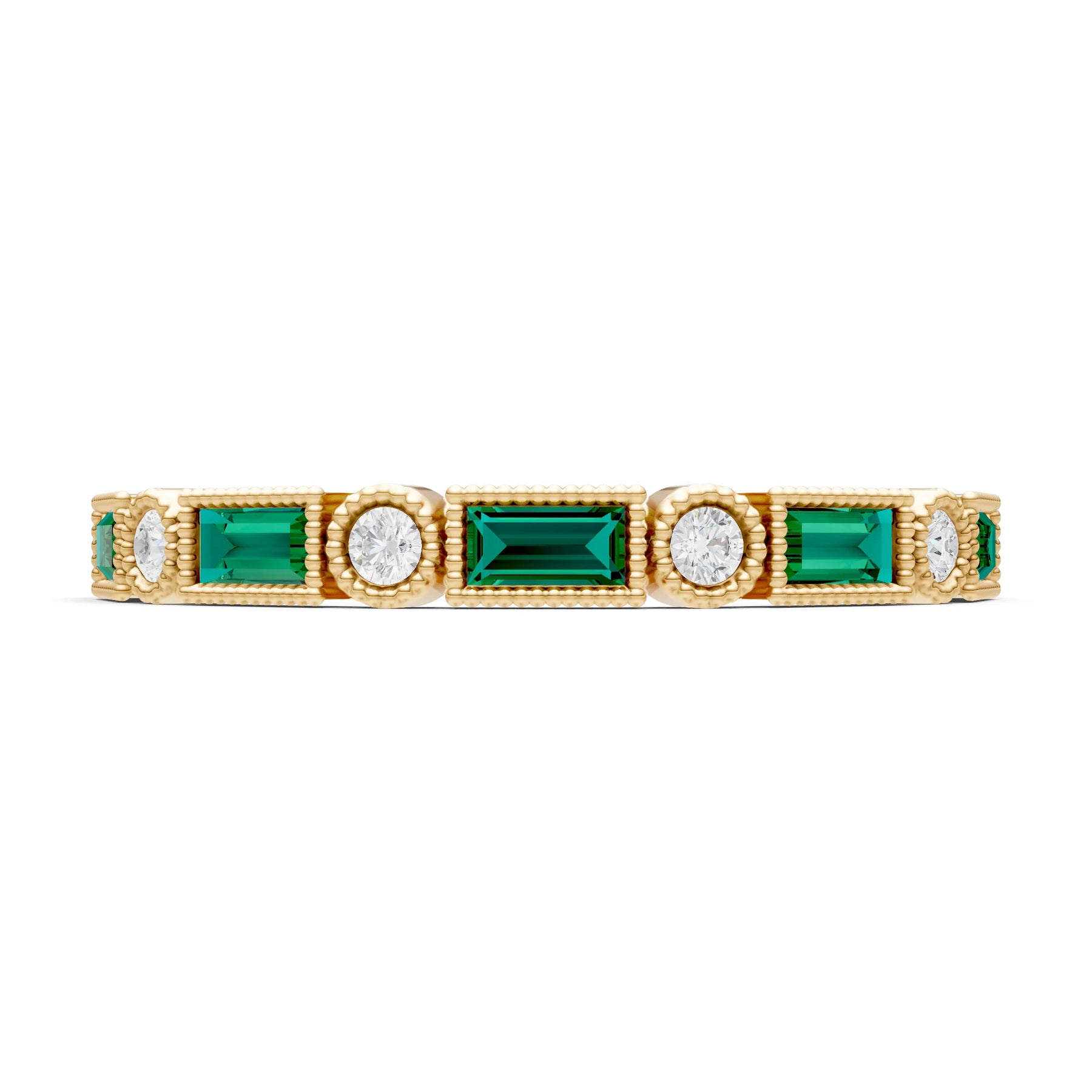 Emerald Dainty Alternating Gemstone Band - Baguette & Round