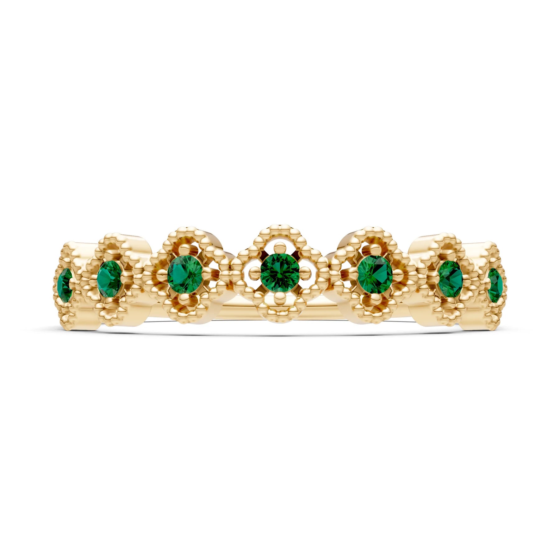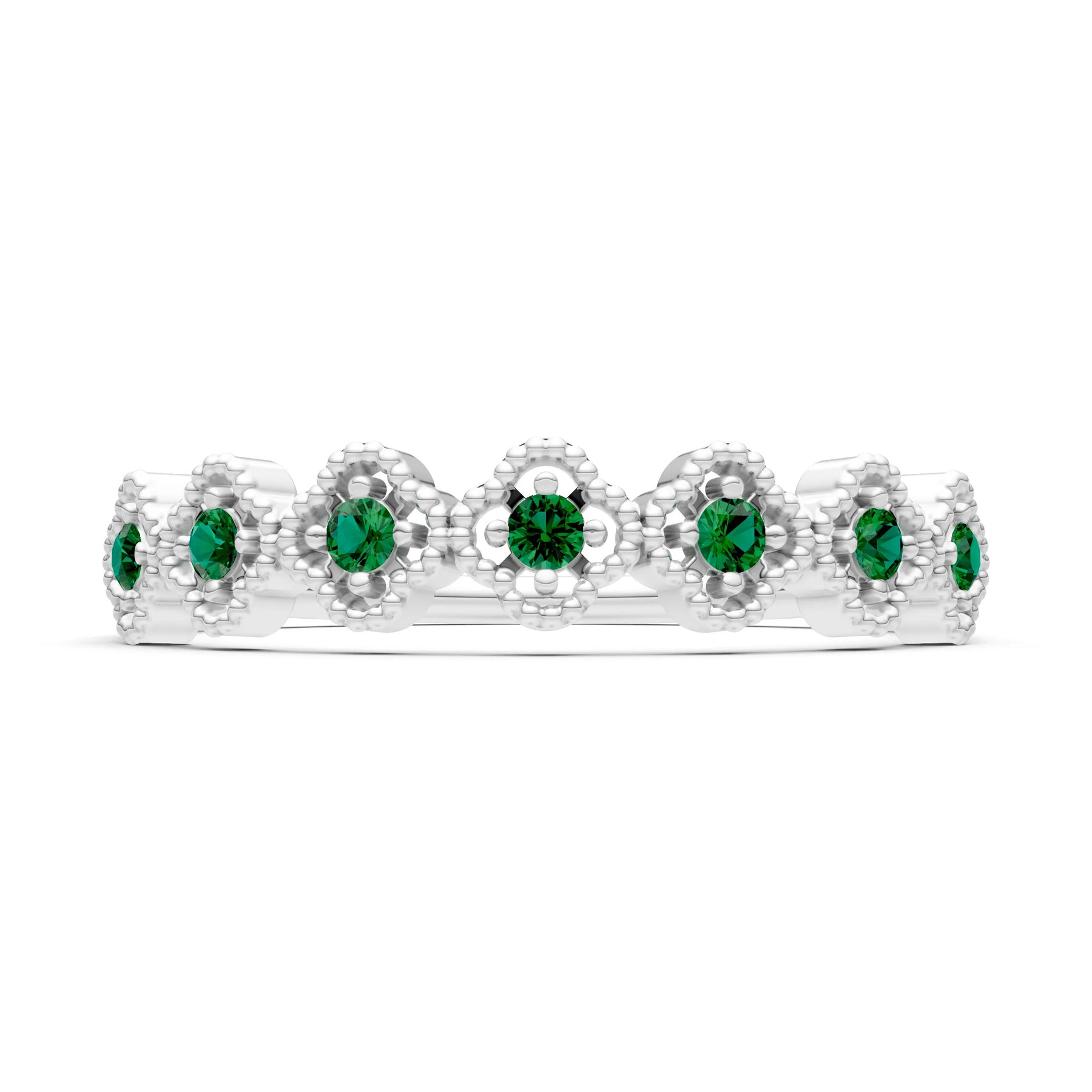 Emerald Dainty Floral Cluster 7-Stone Half Band – Round