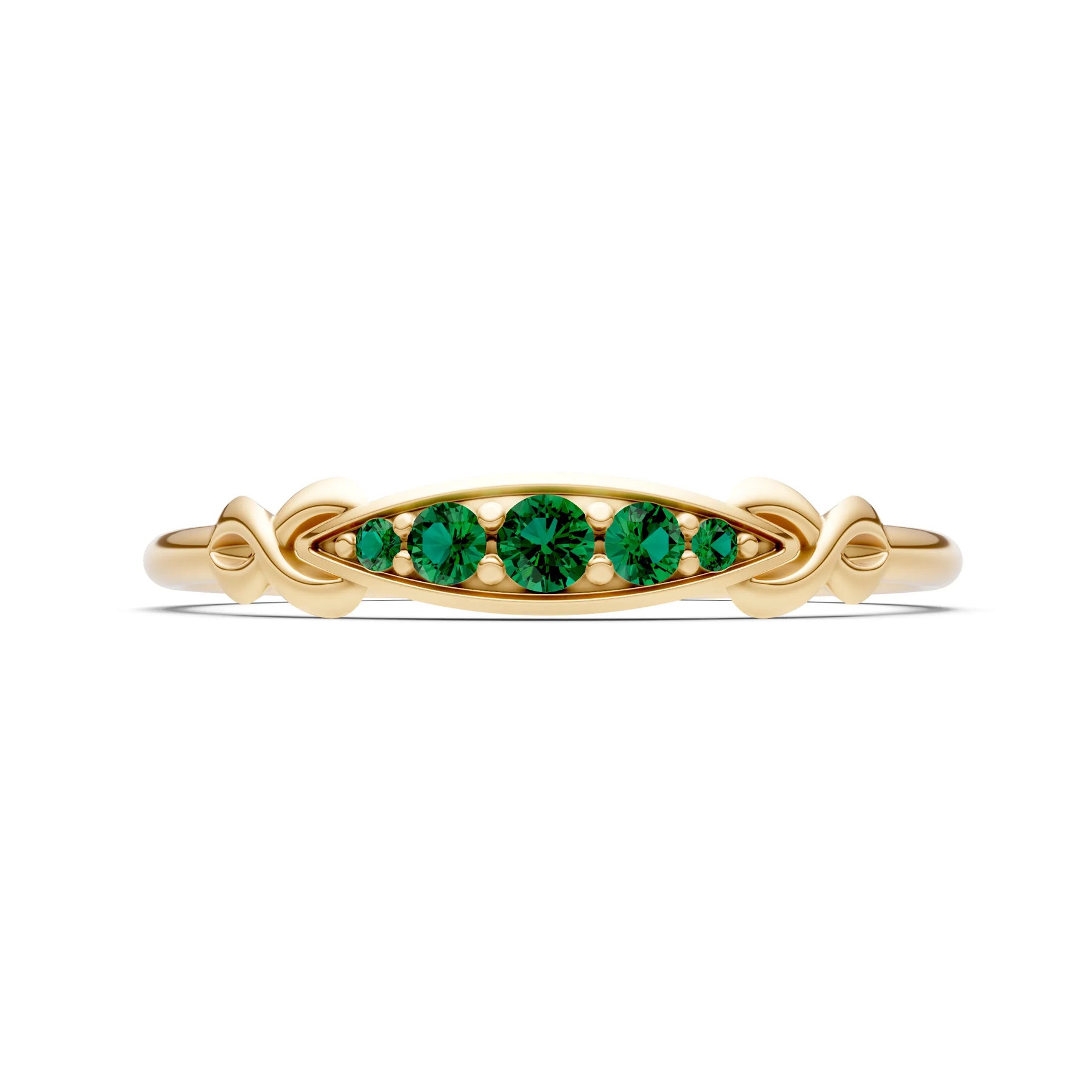 Emerald Dainty Graduated Scroll 5-Stone Ring