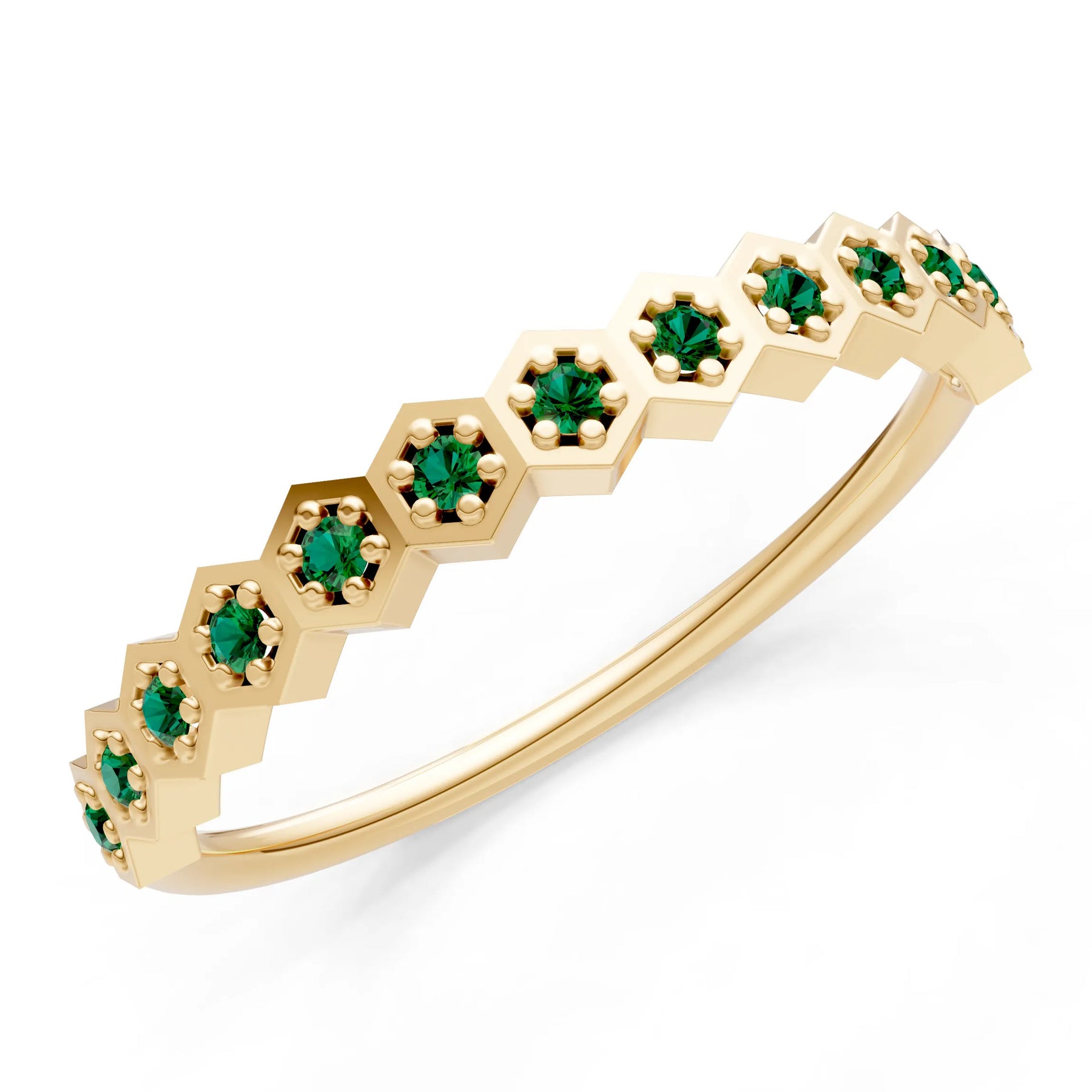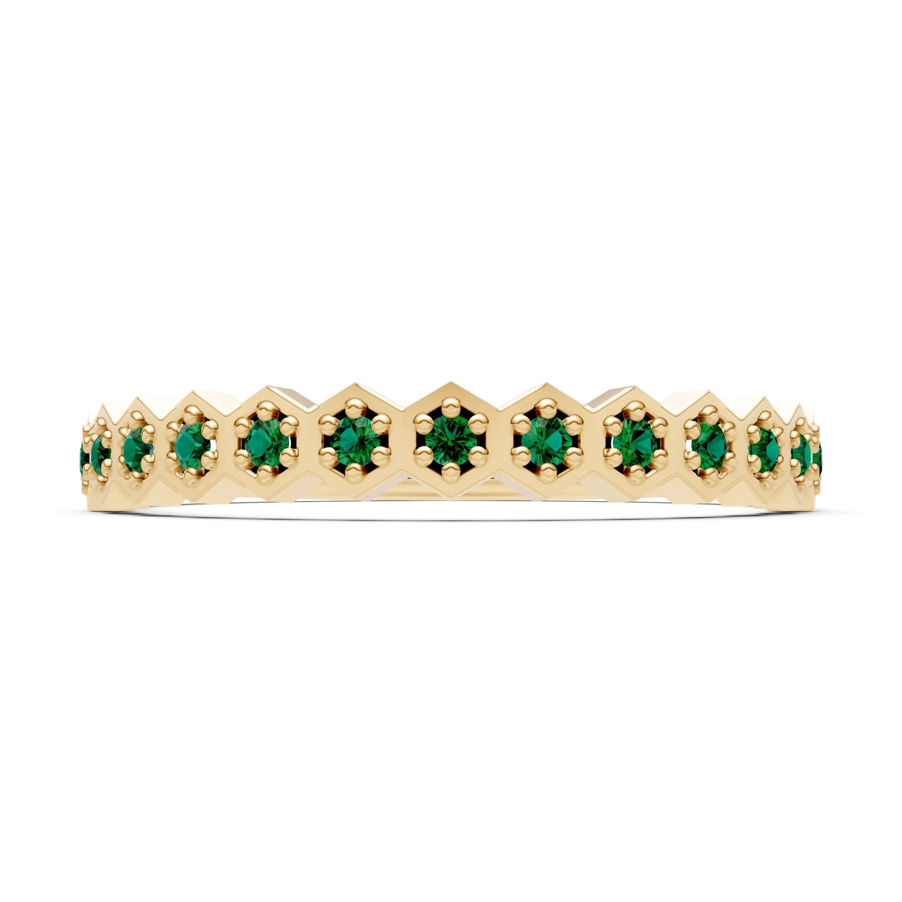 Emerald Dainty Hex Cell Pavé Round Cut Half Band