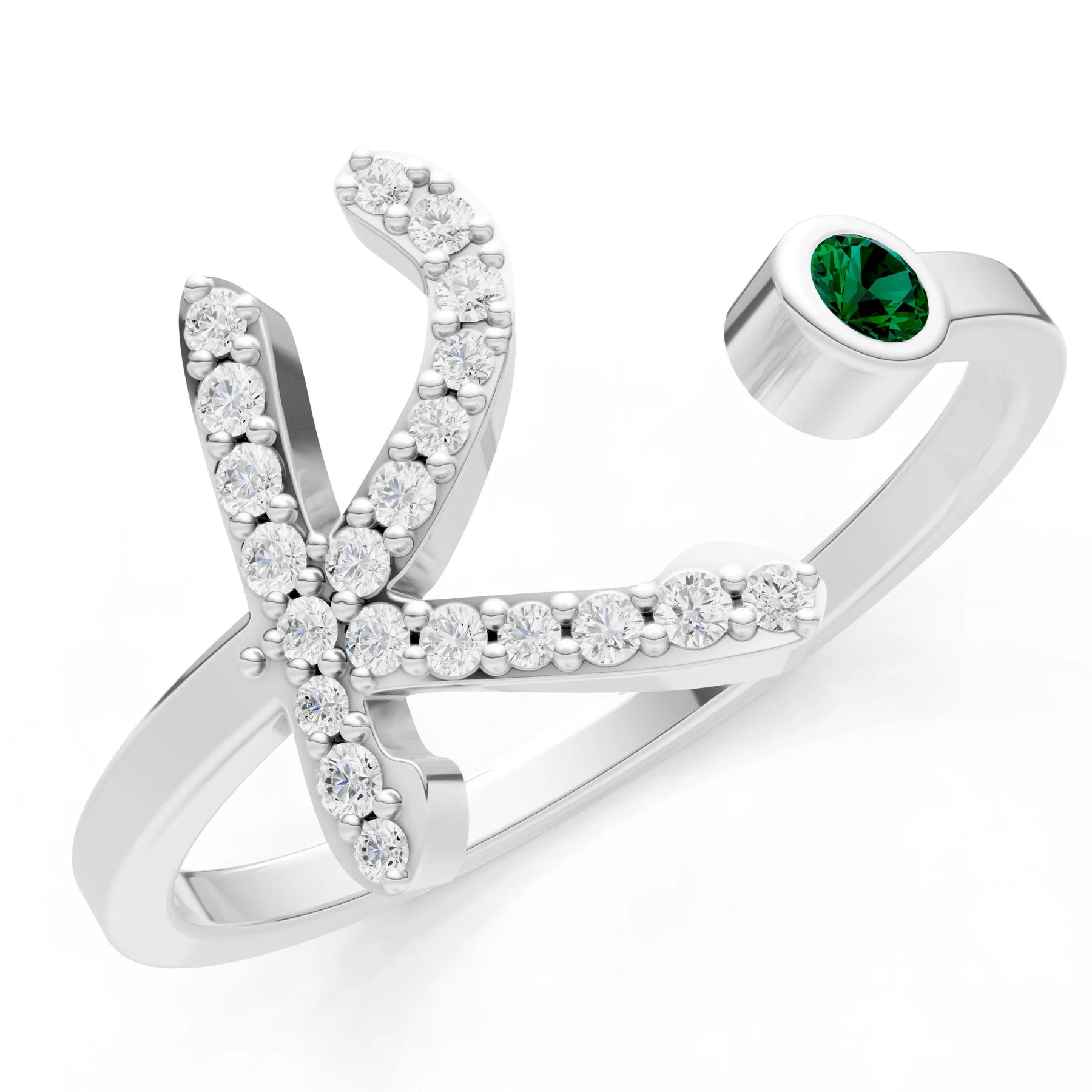 Emerald Dainty Initial Letter Birthstone Open Ring – K