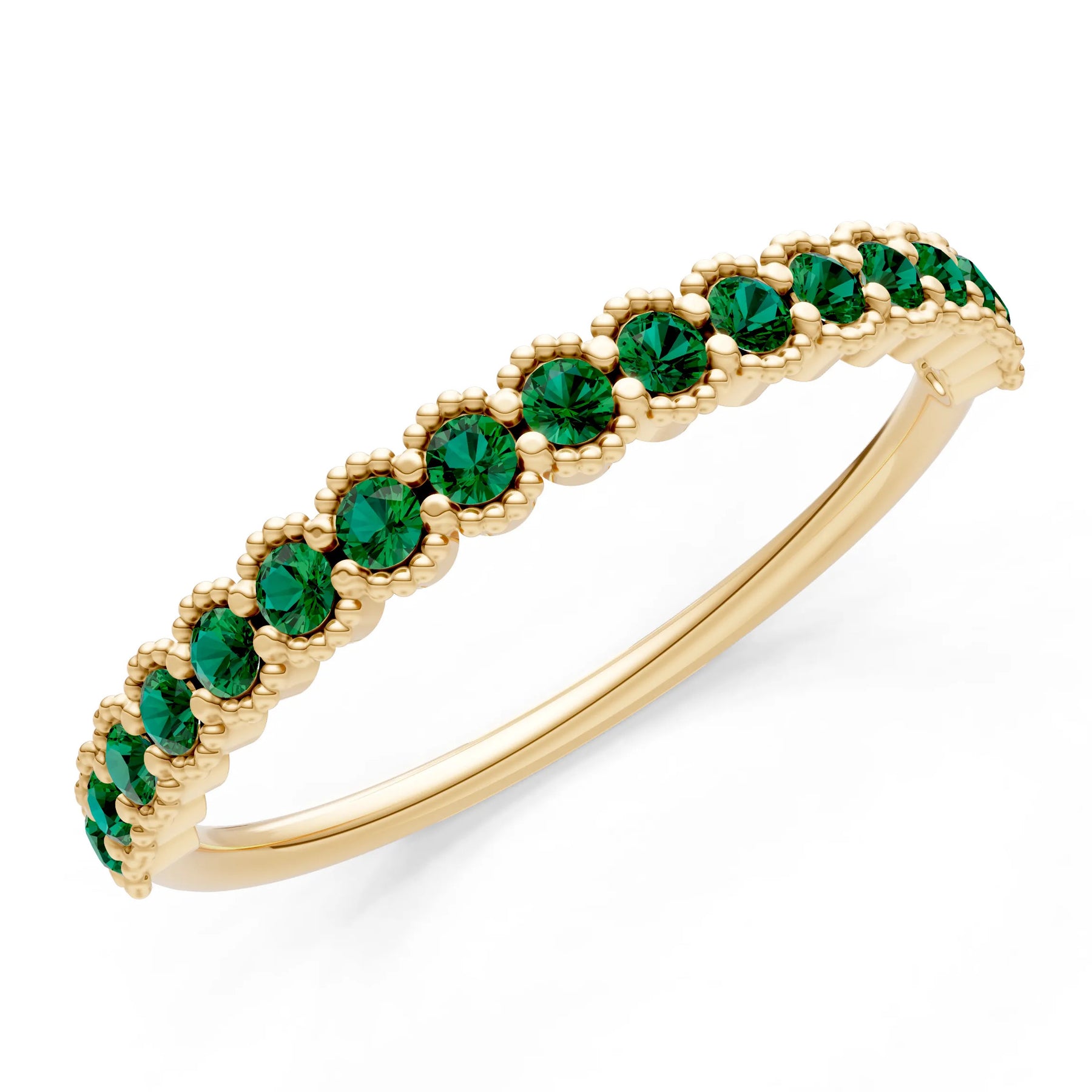 Emerald Dainty Round Cut U-Scallop Eternity Ring