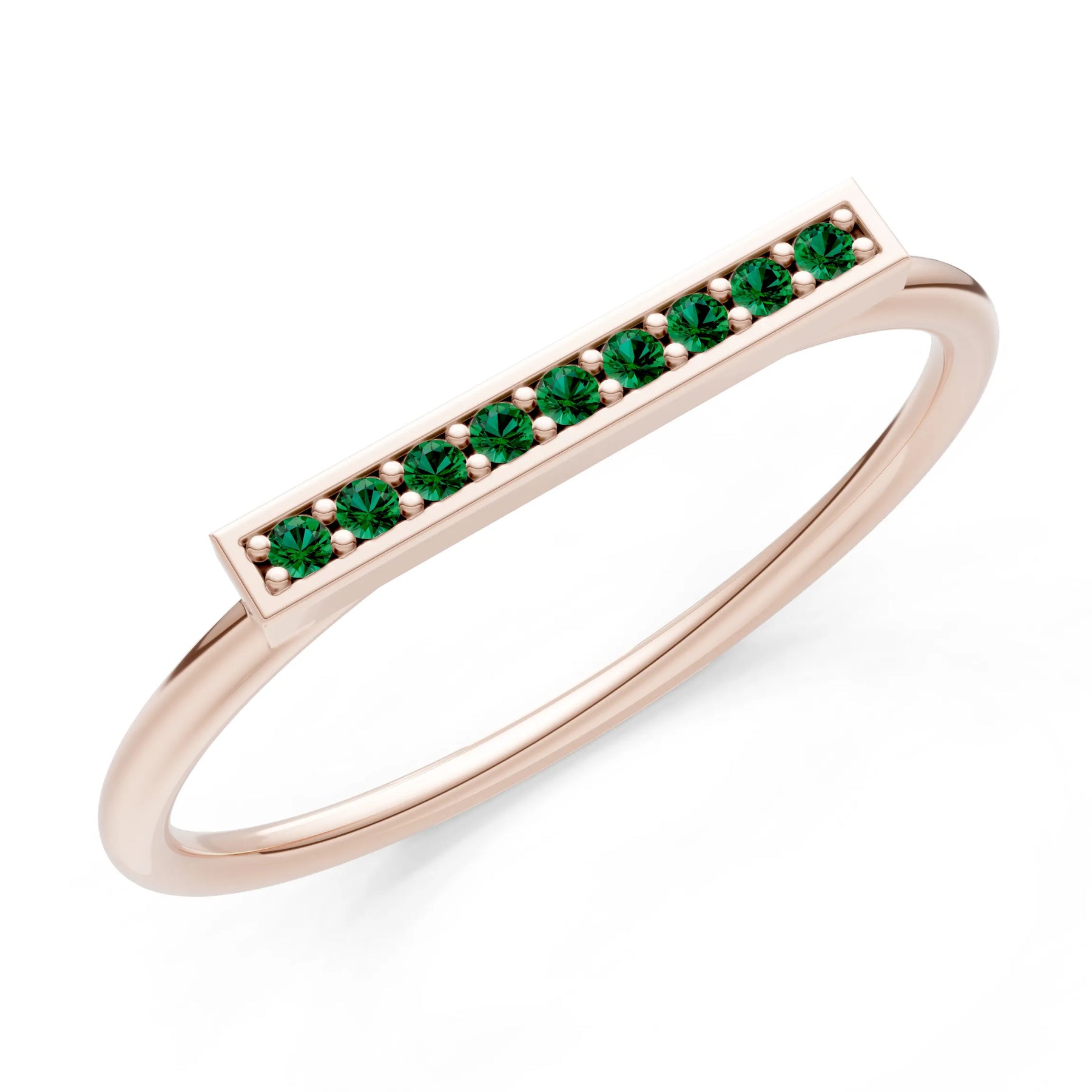Emerald Dainty Slim Bar Pavé Round Cut Half Band
