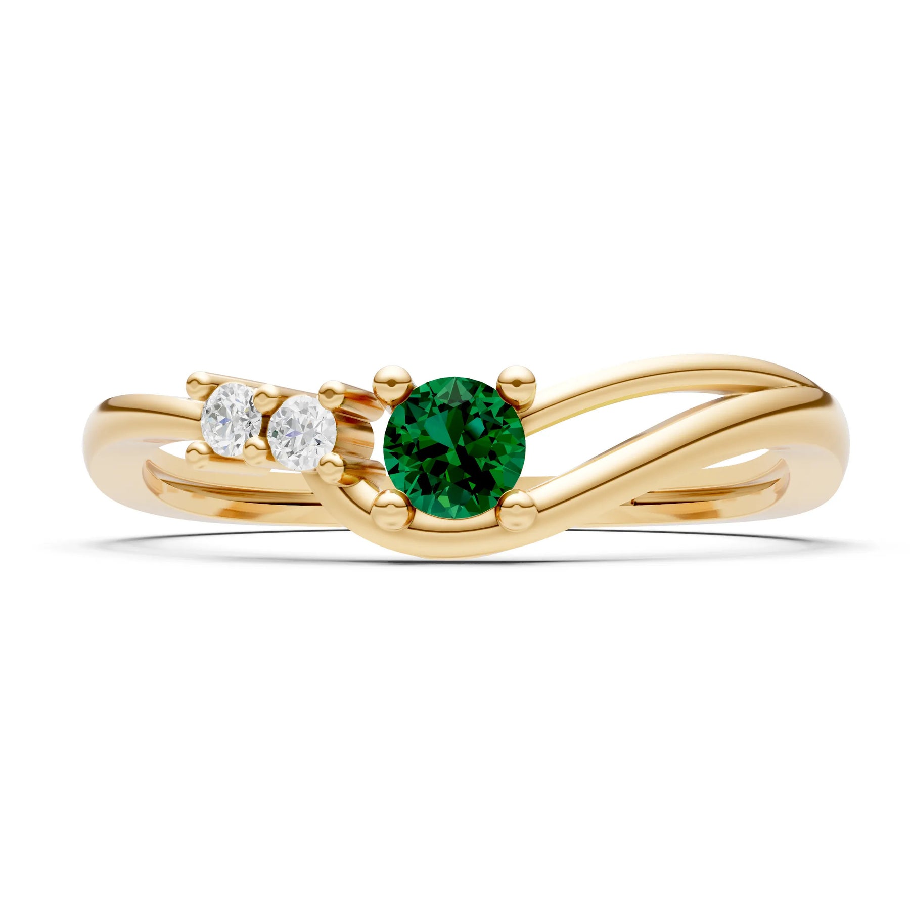 Emerald Dainty Three-Stone Curved Accent Ring - Round