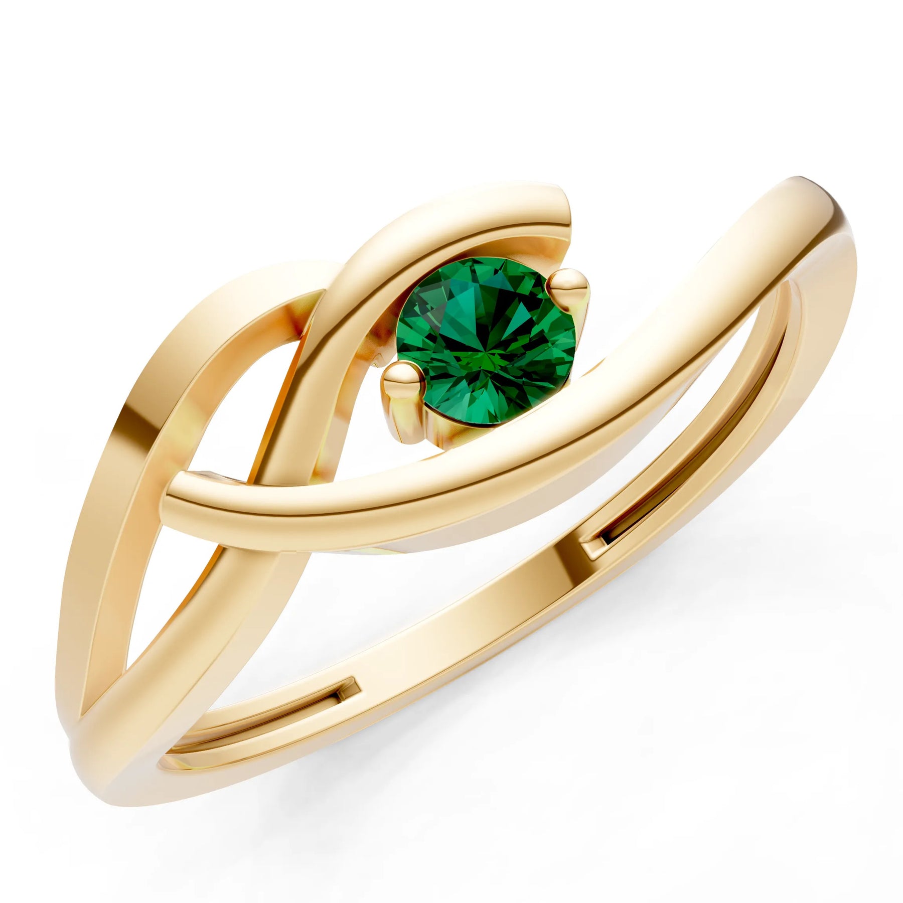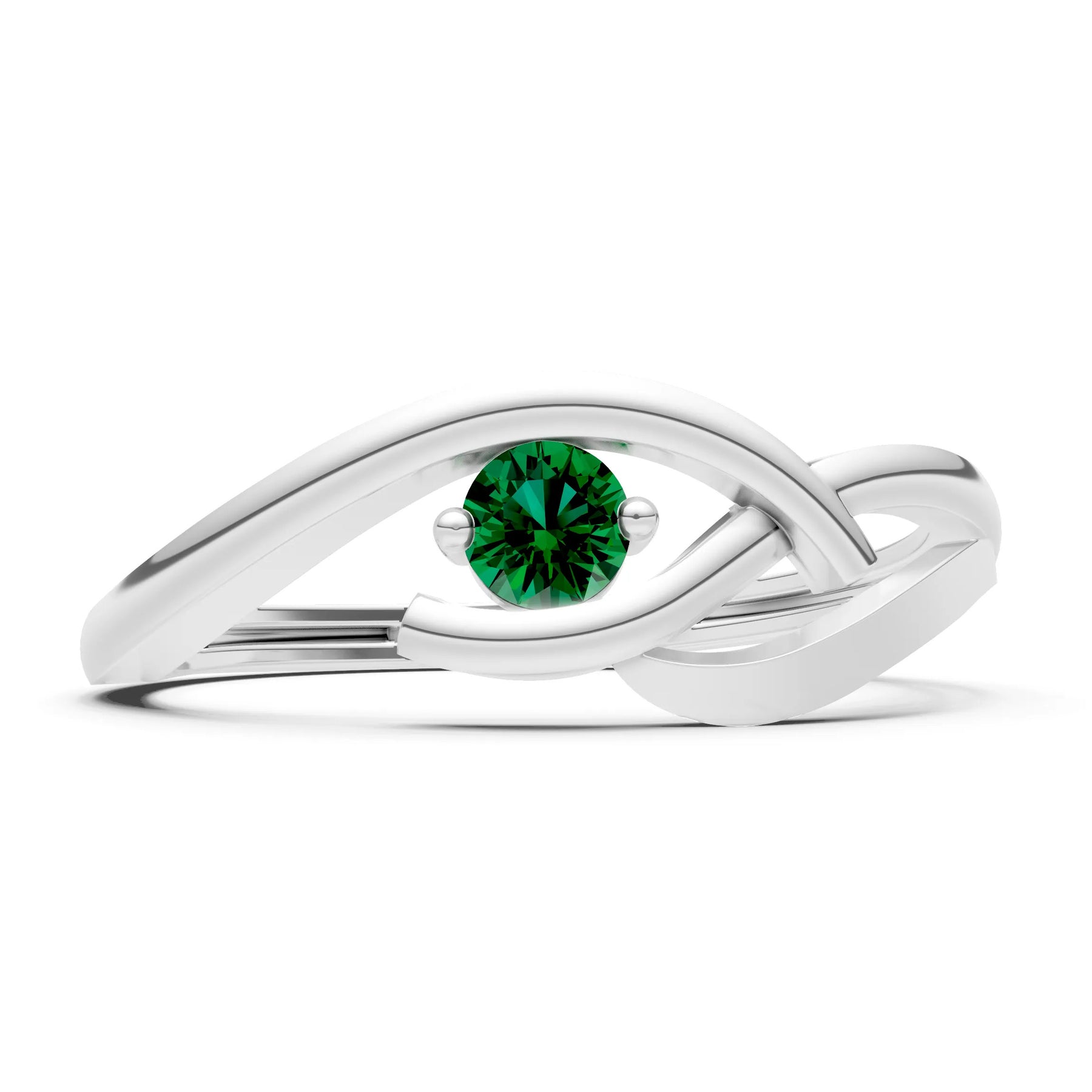 Emerald Dainty Twist Solitaire Round Ring - Round