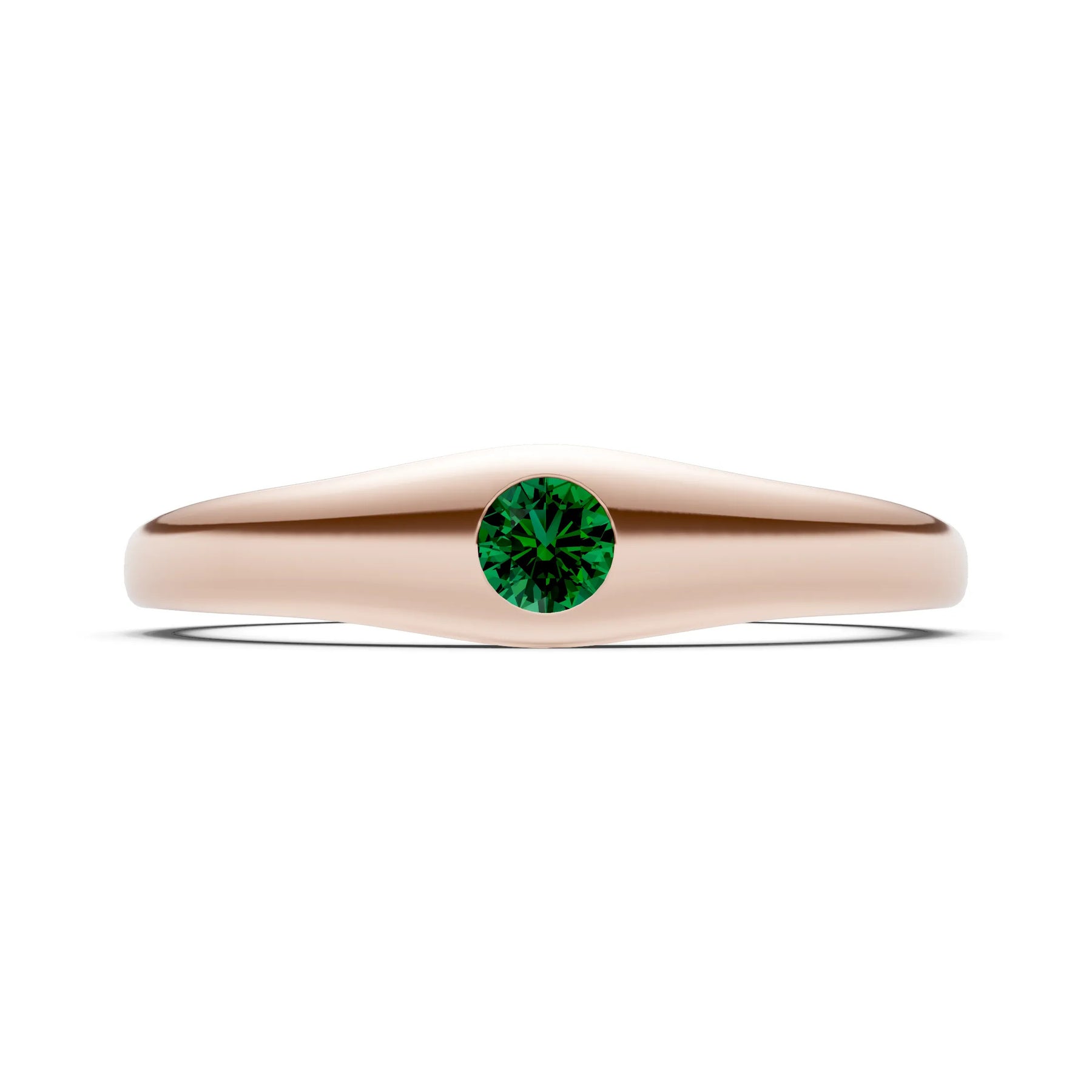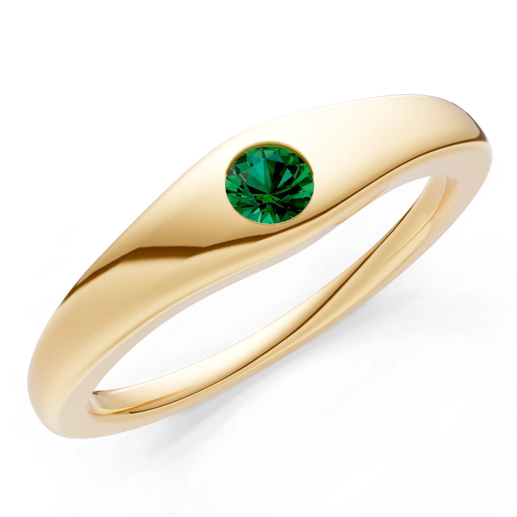 Emerald Flush-Set Round Gemstone Mini Signet Ring