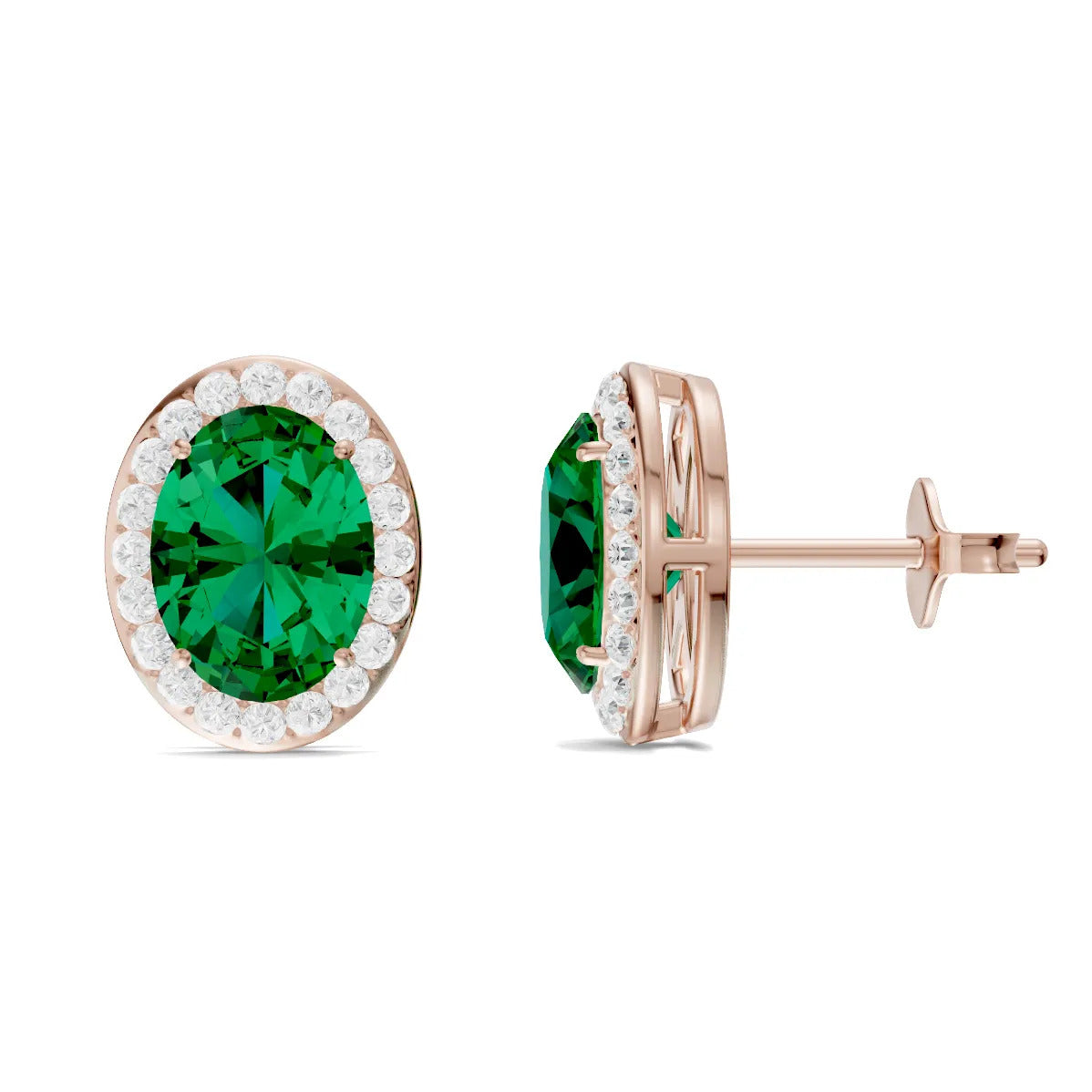 Emerald Oval Halo Studs Earrings - 7x5mm