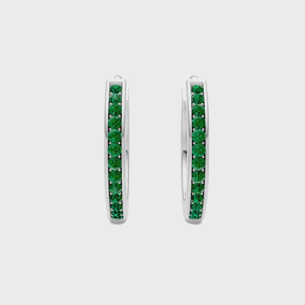 Emerald Pave Hinged Huggie Hoop Earrings - Mini