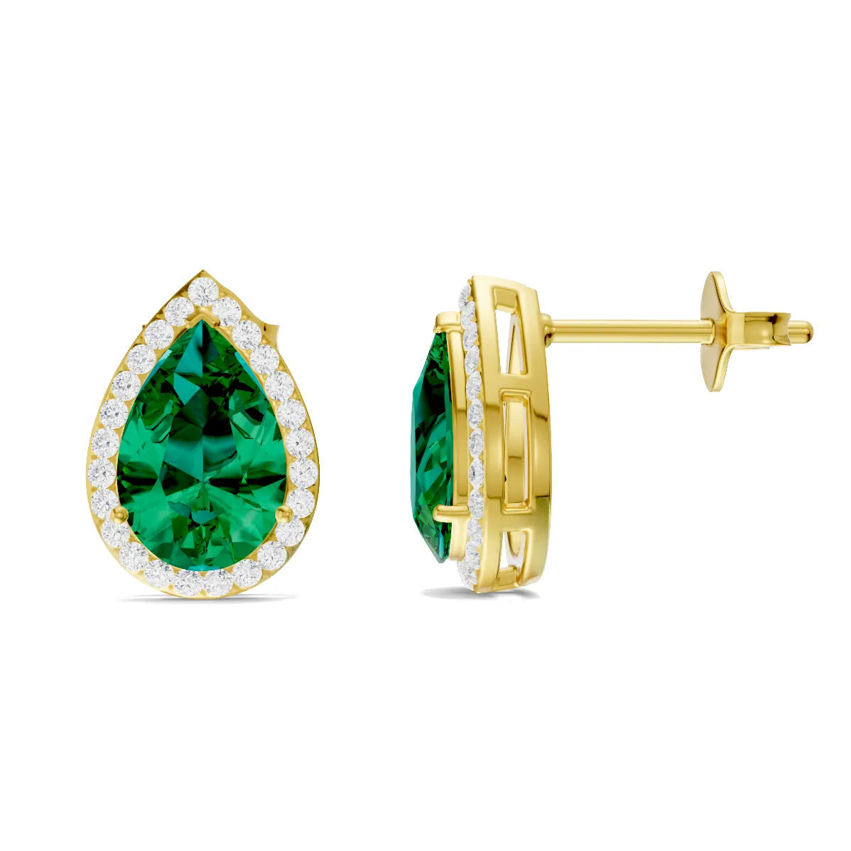 Emerald Pear Halo Studs - 9x6mm