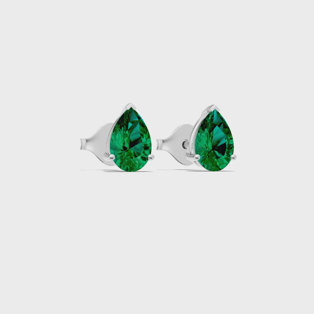 Emerald Pear Studs Earrings - 6x4mm