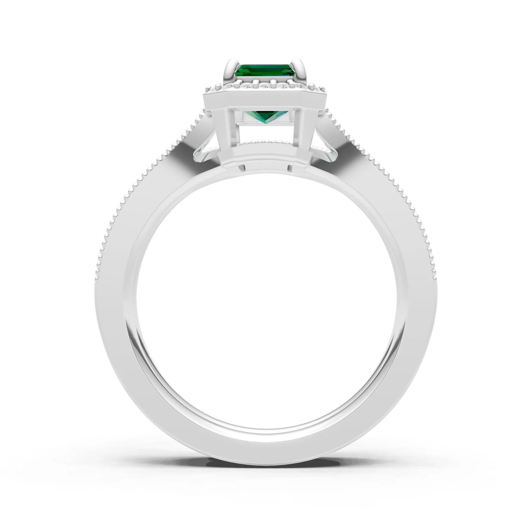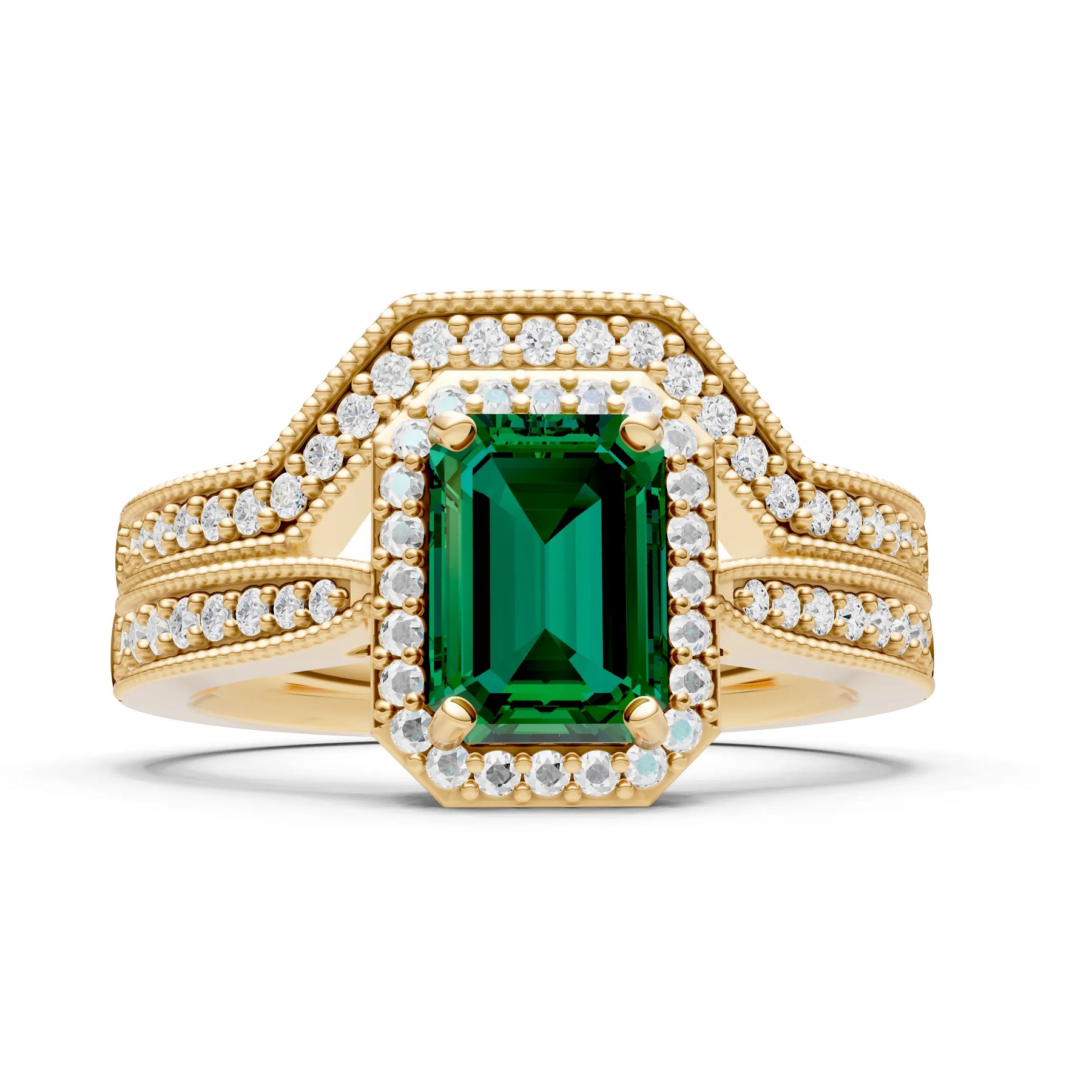 Emerald Petitie Vintage Inspired Milgrain Ring Set