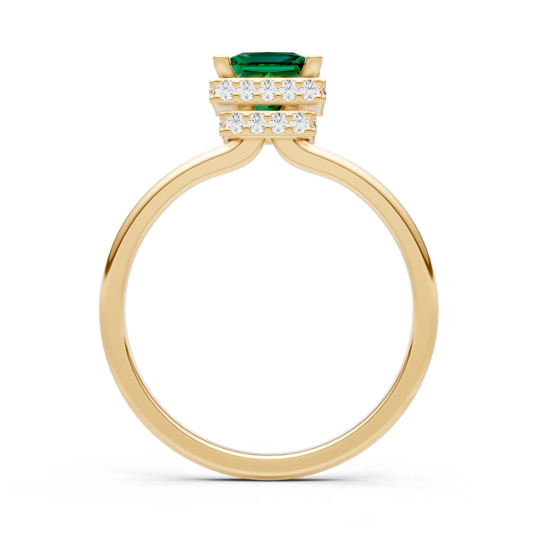 Emerald Princess Cut Hidden Double Halo Engagement Ring