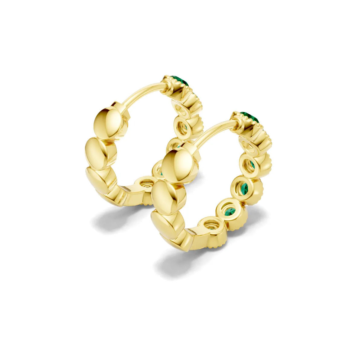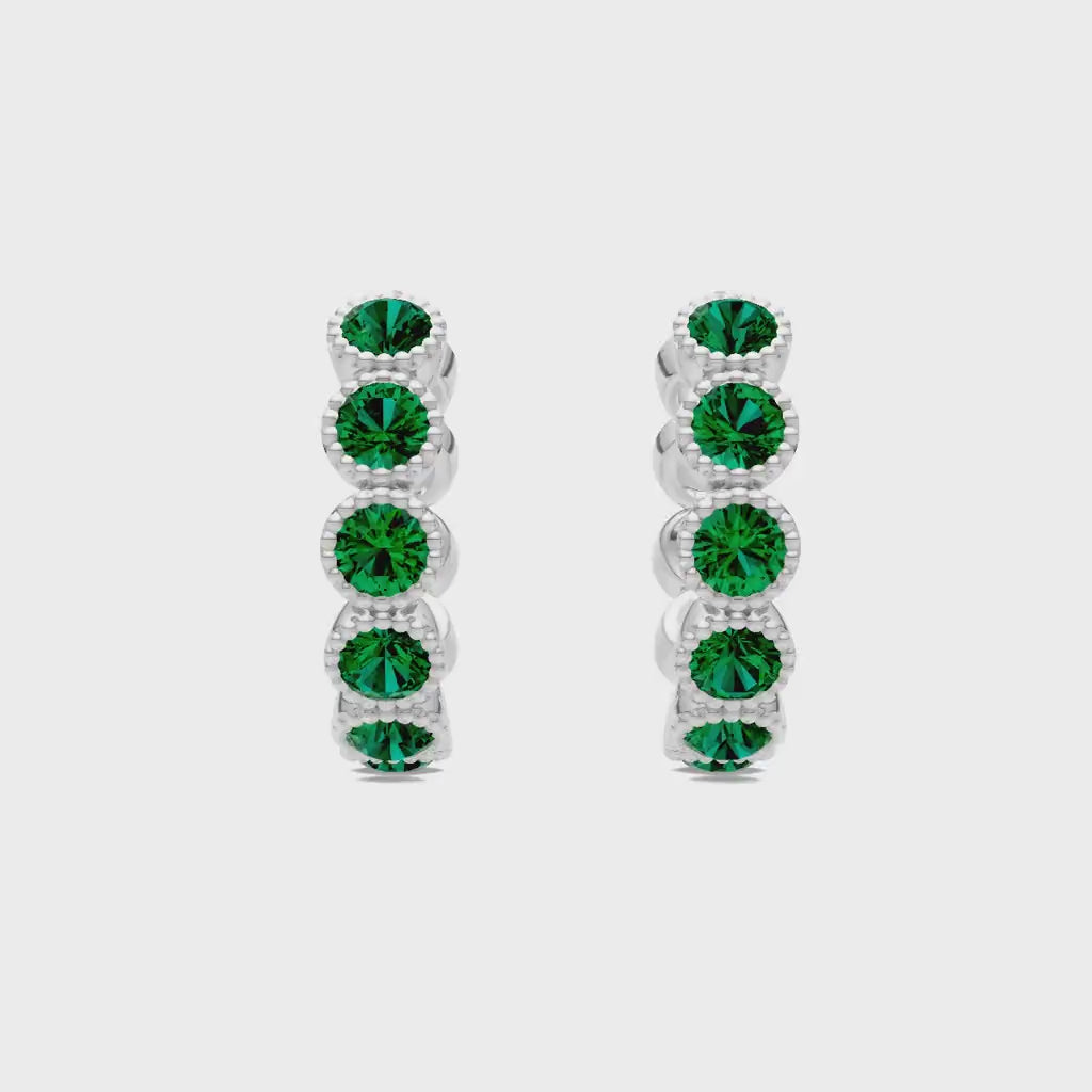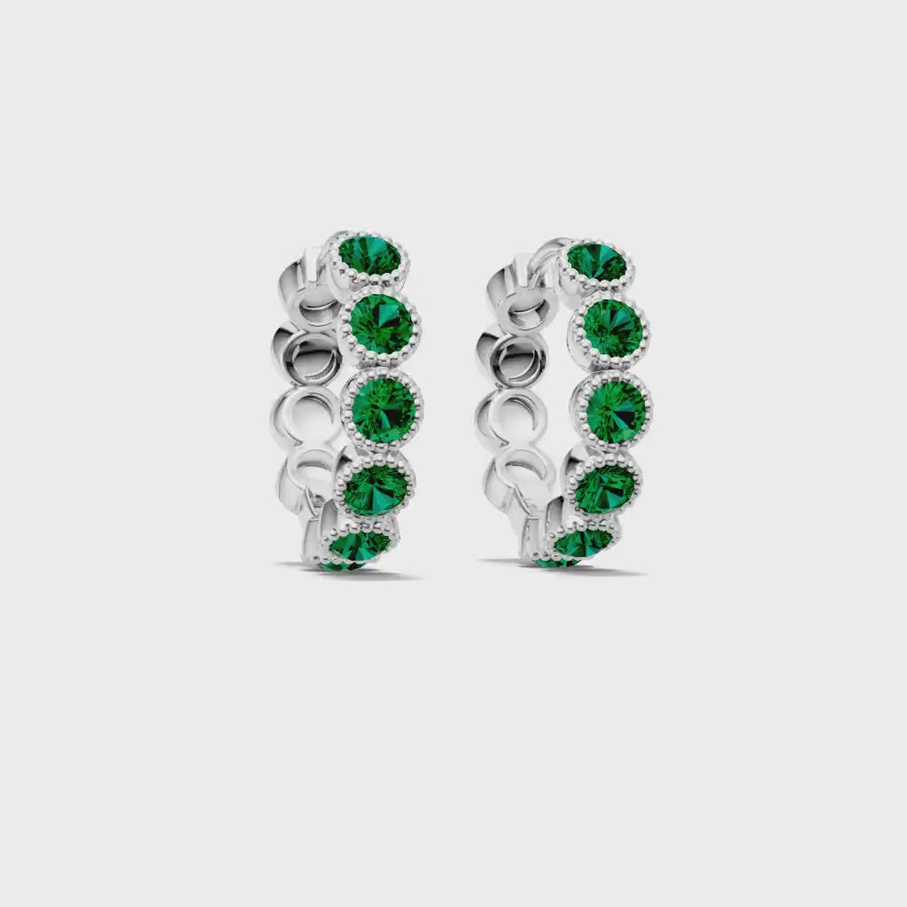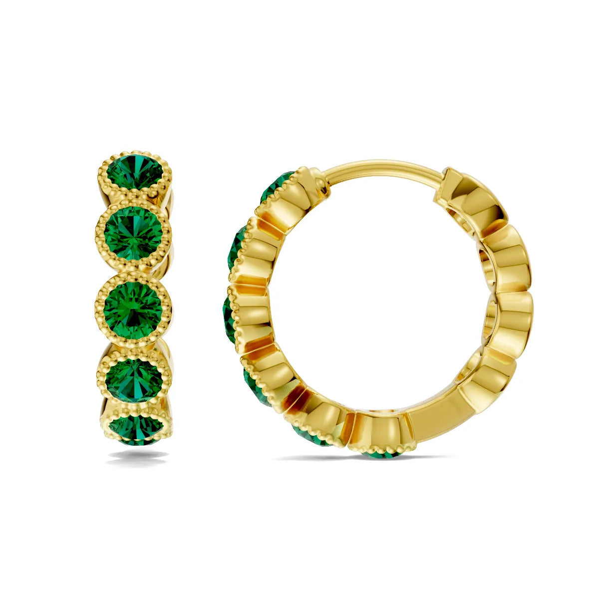 Emerald Round Bezel Huggies Earrings with Milgrain