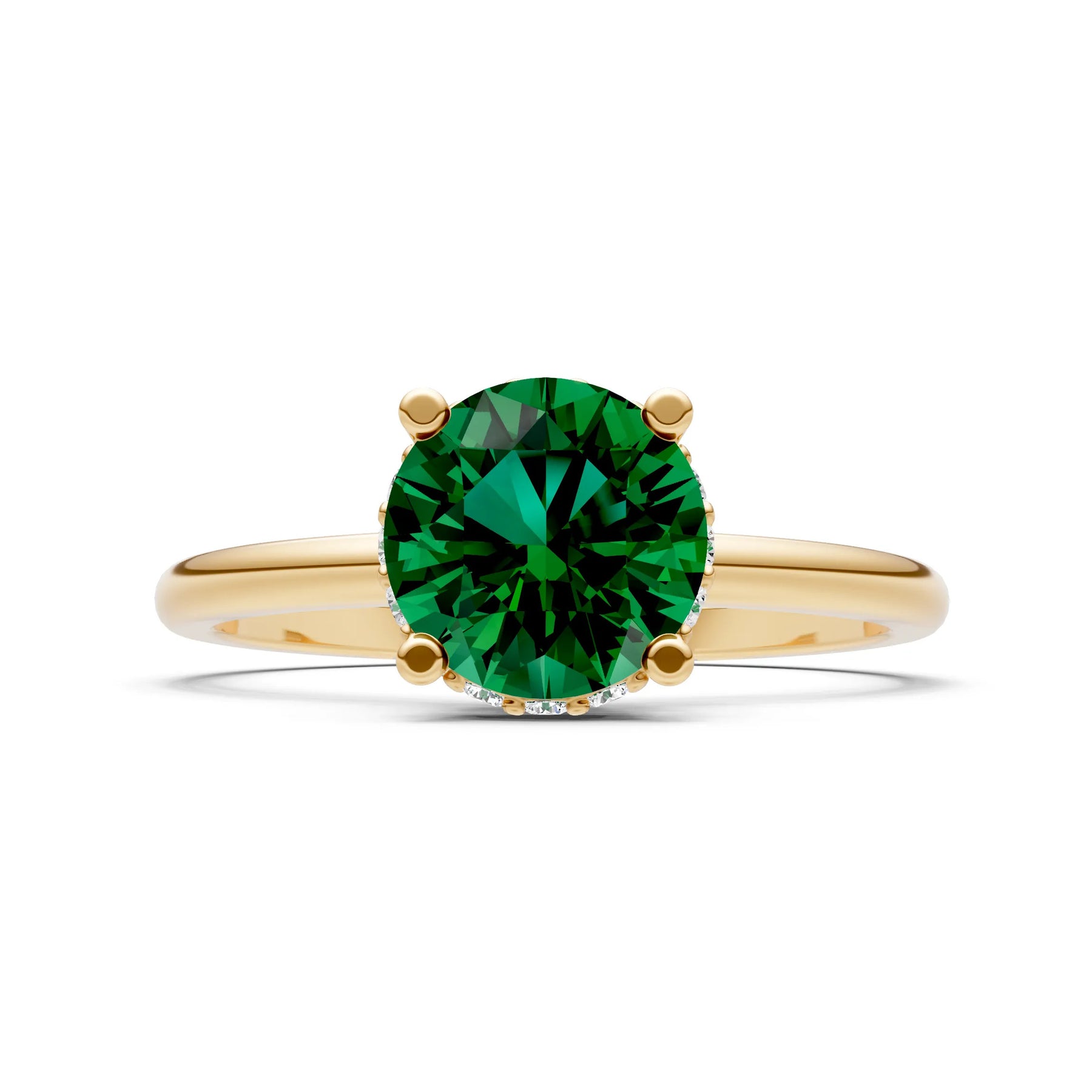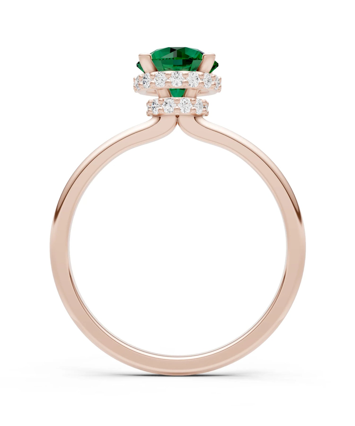 Emerald Round Shape Hidden Double Halo Engagement Ring