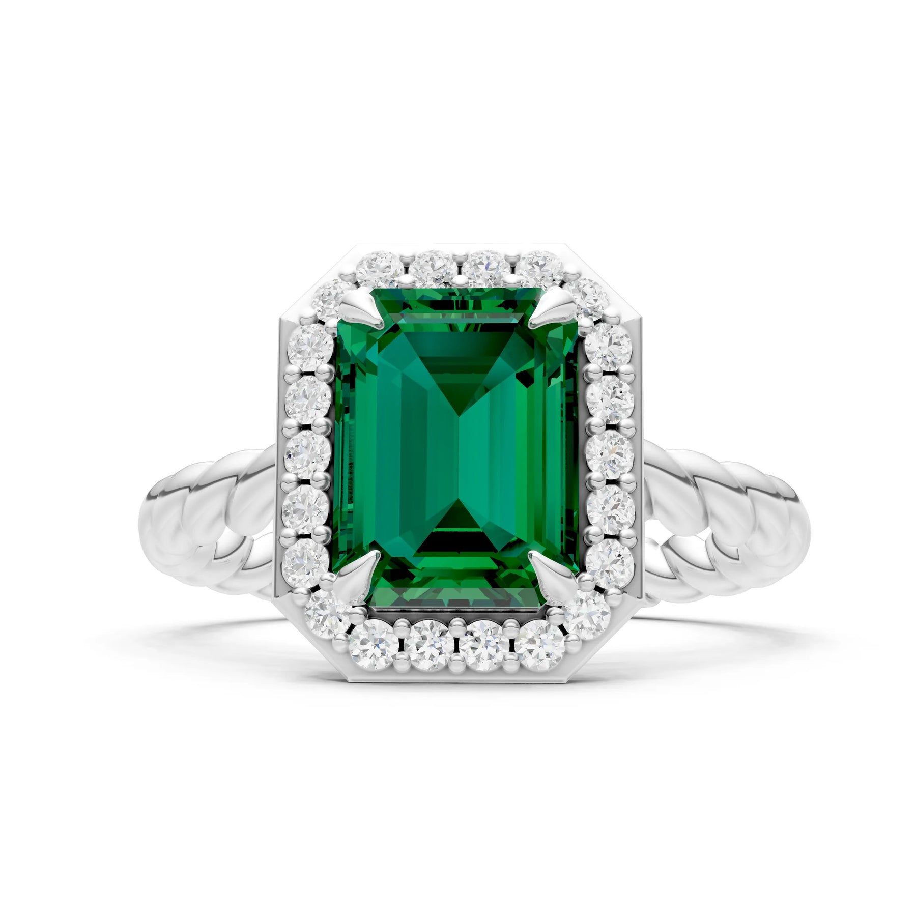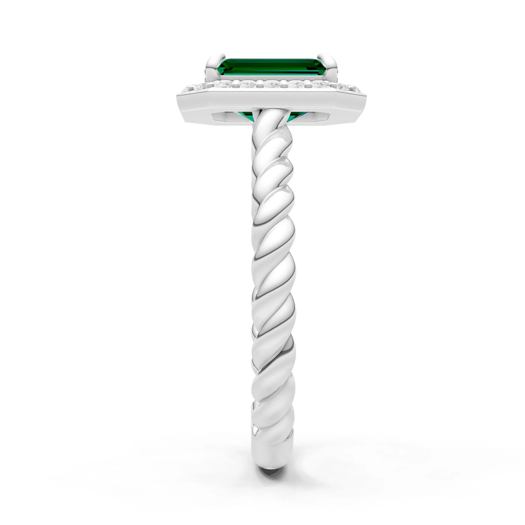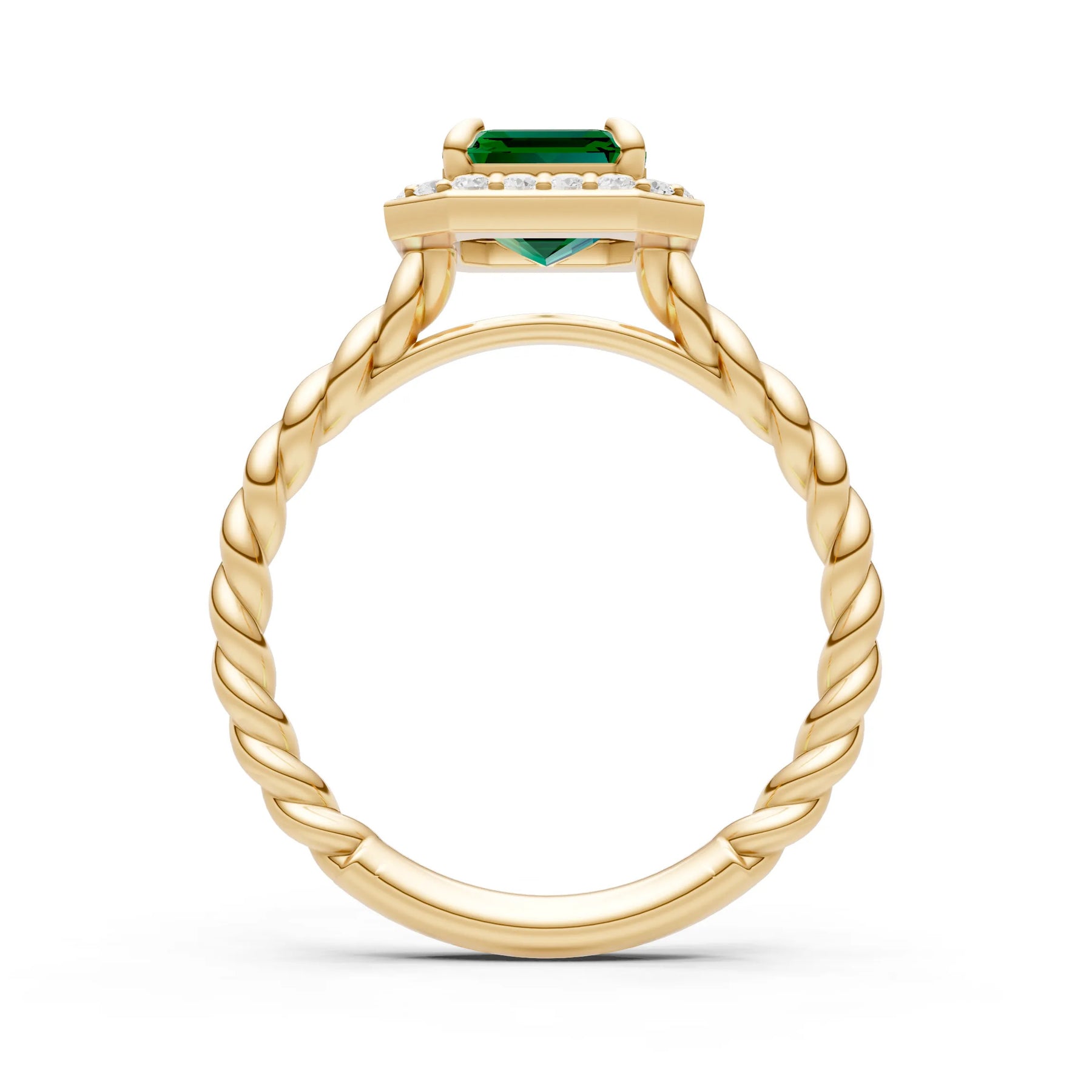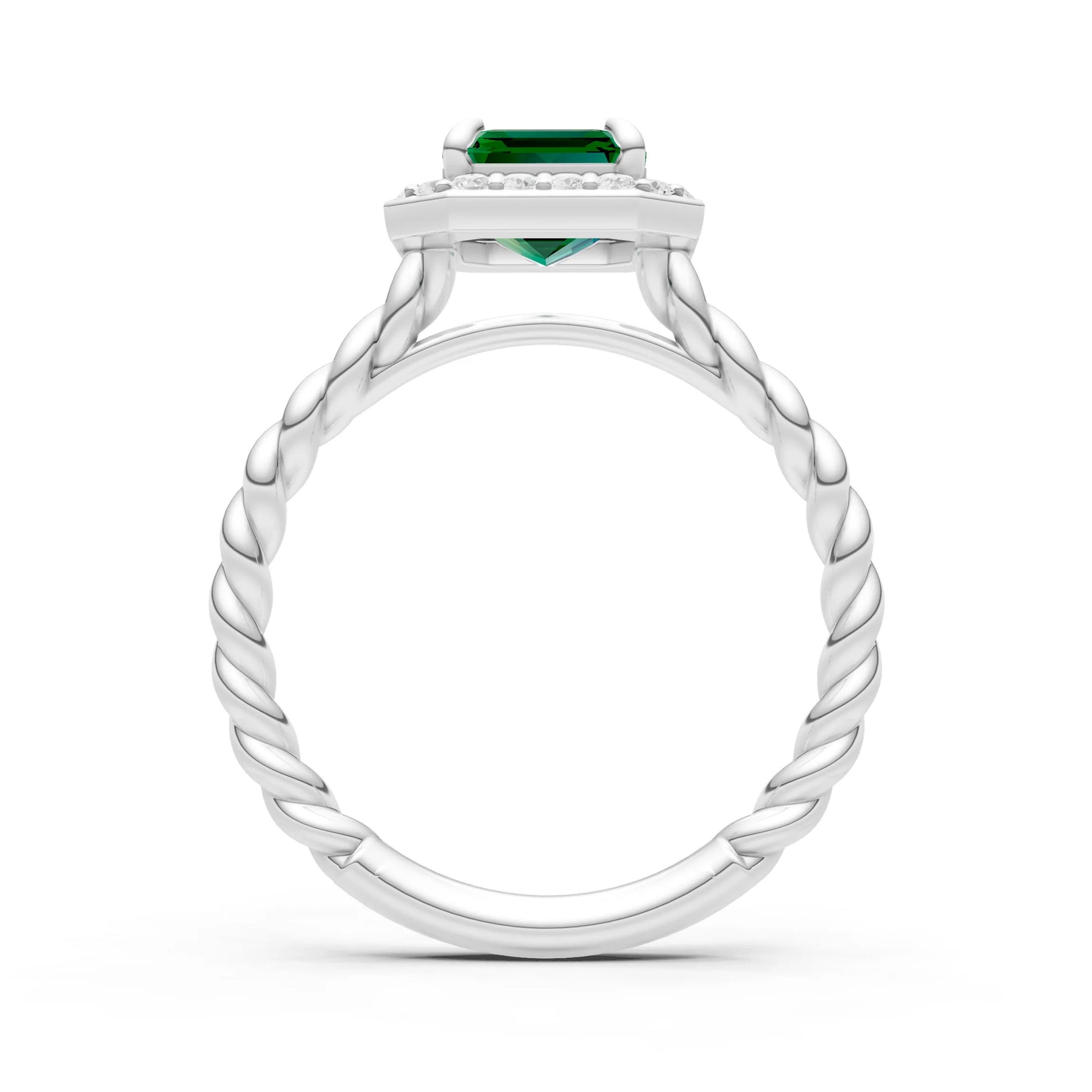 Emerald Twisted Vine Emerald Cut Solitaire Halo Ring