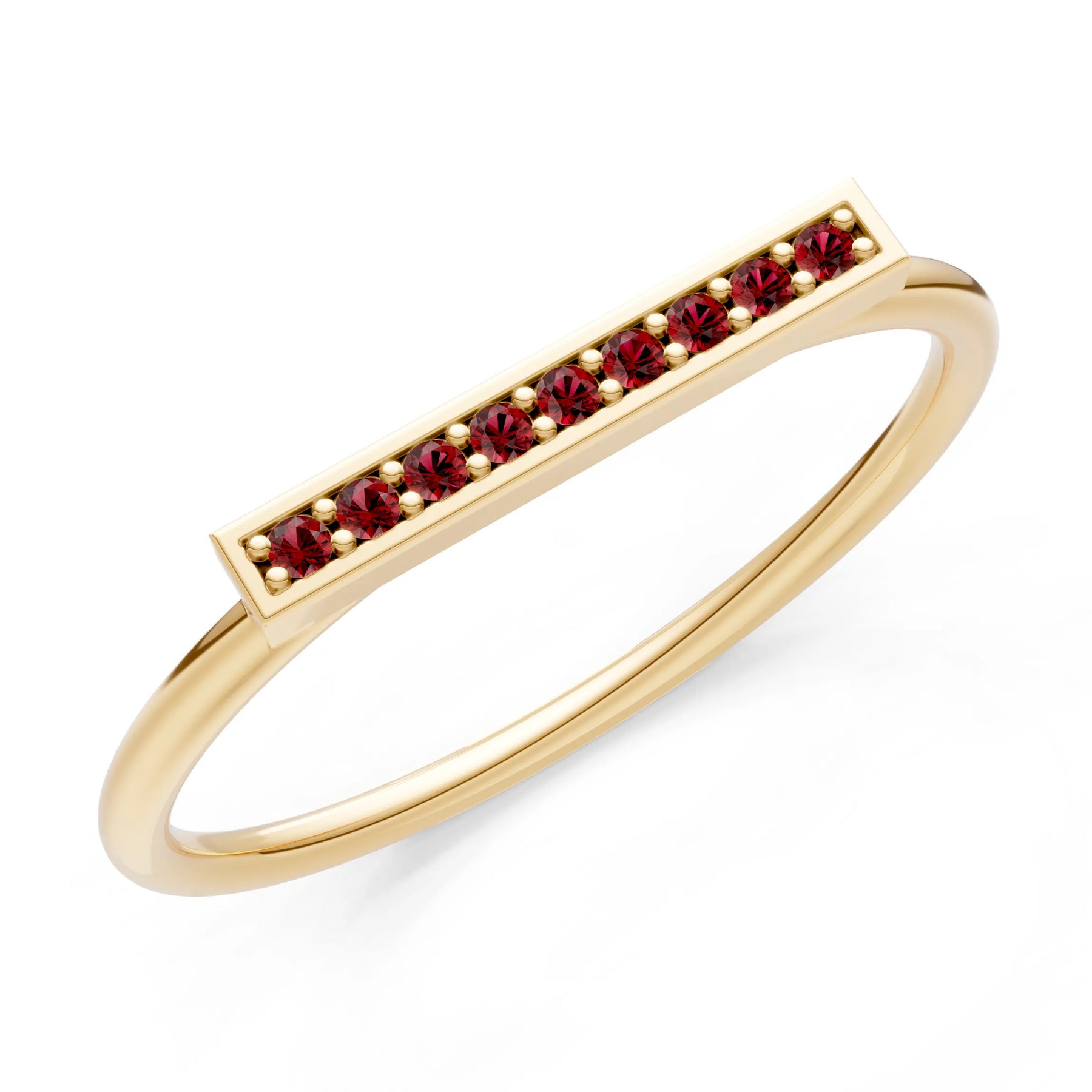 Garnet Dainty Slim Bar Pavé Round Cut Half Band