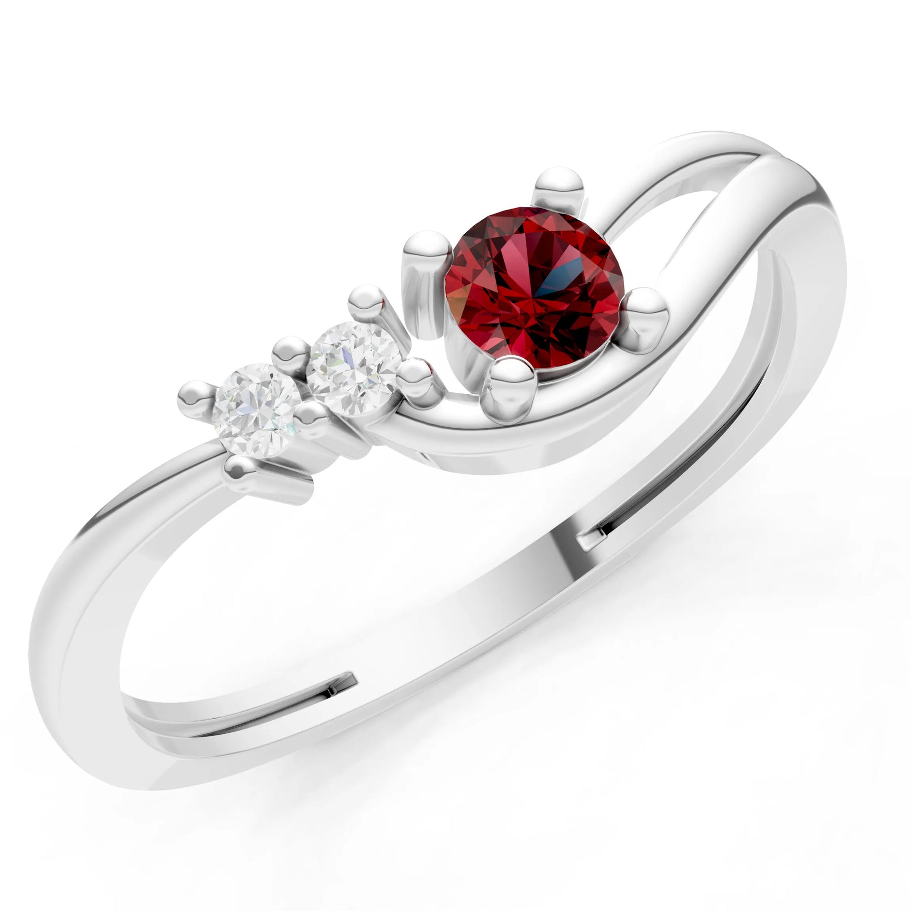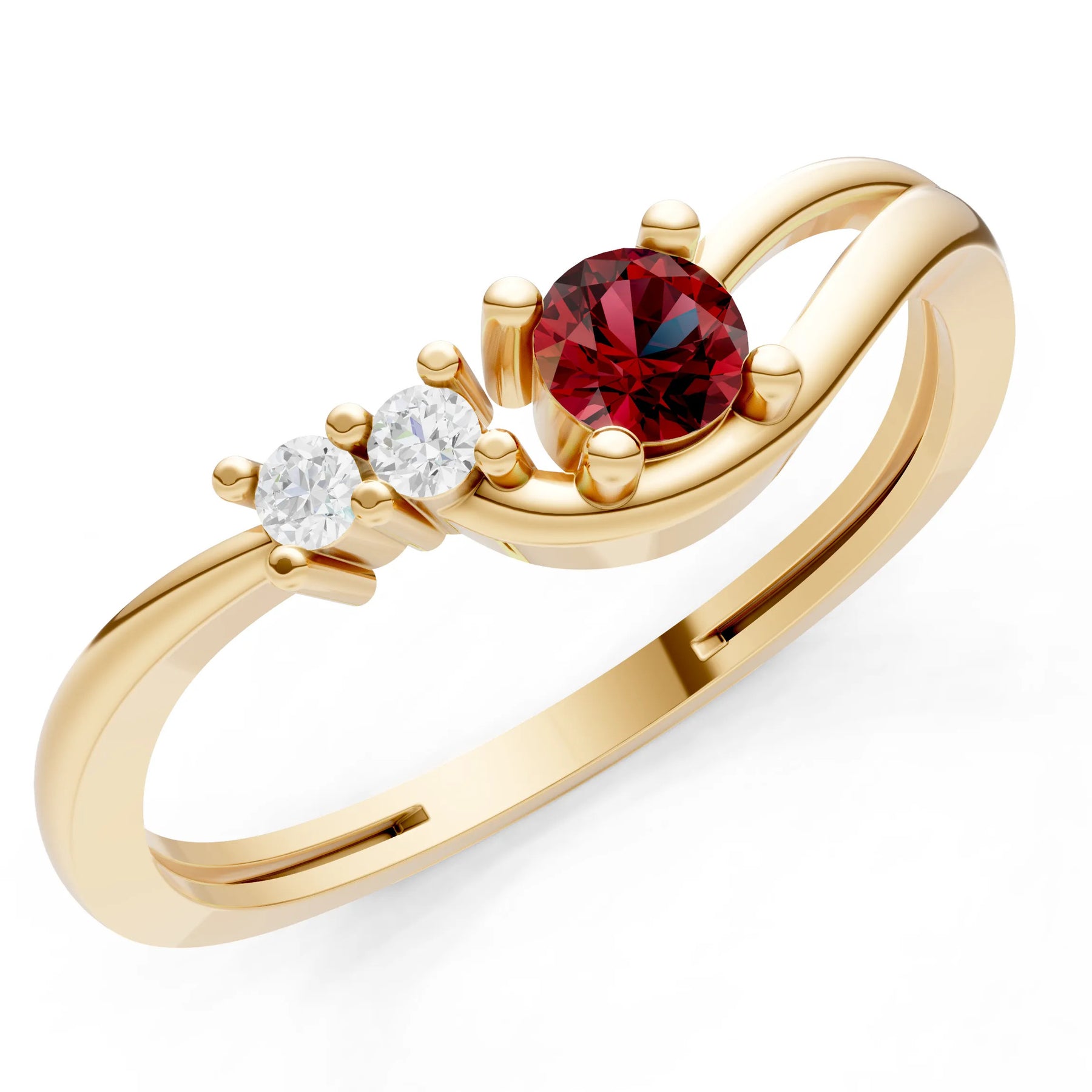 Garnet Dainty Three-Stone Curved Accent Ring - Round