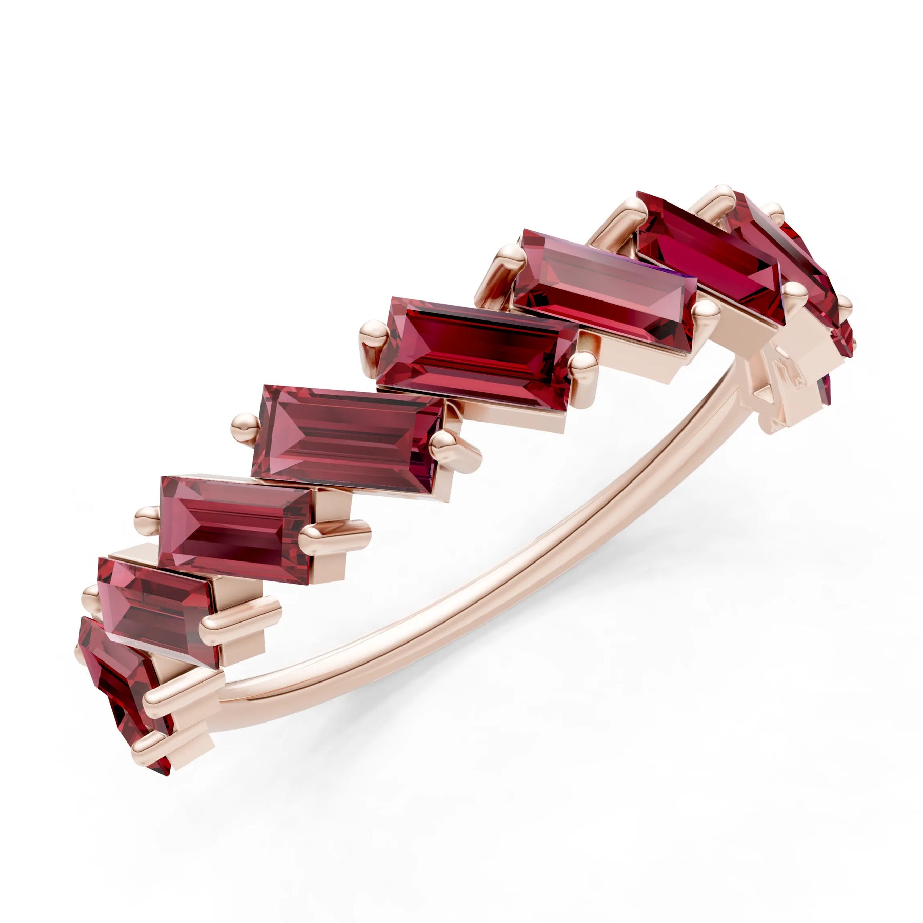 Garnet Dainty Zigzag Baguette Cut Prong Bar Full Band