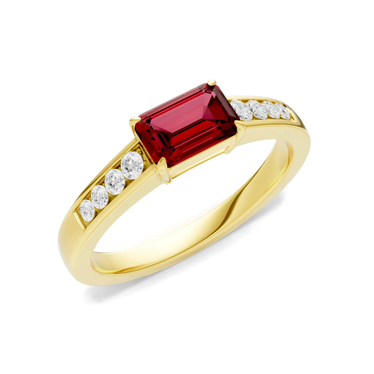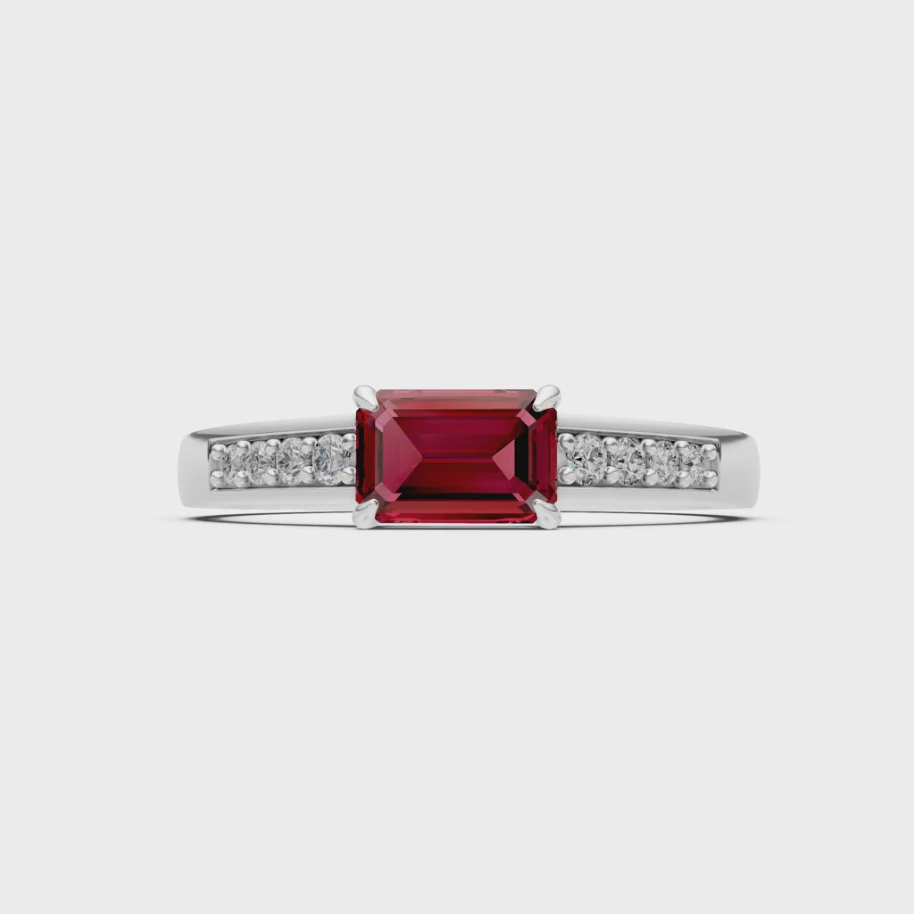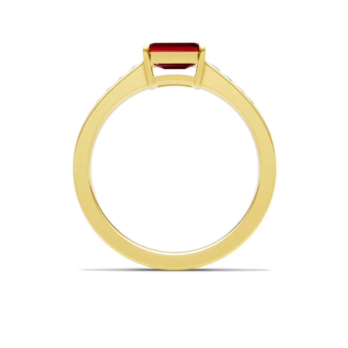 Garnet East West Emerald Cut Gemstone Ring with Accents