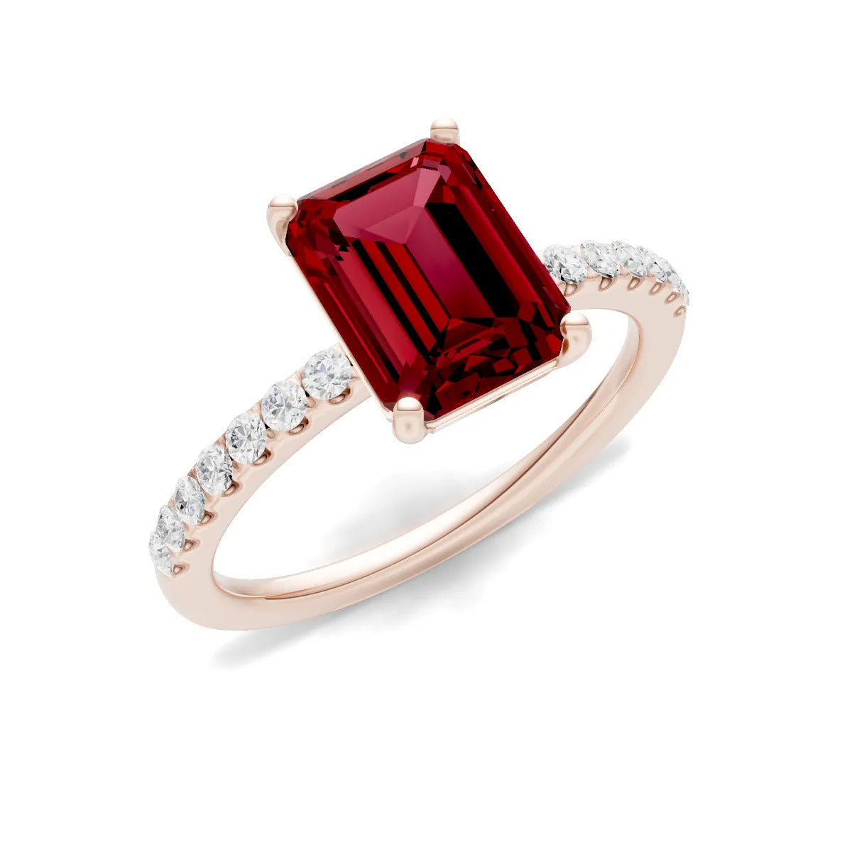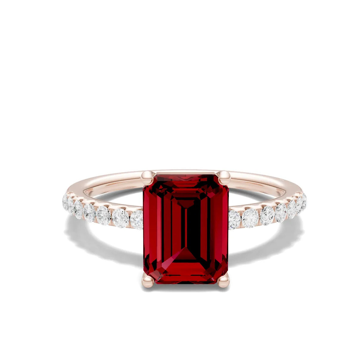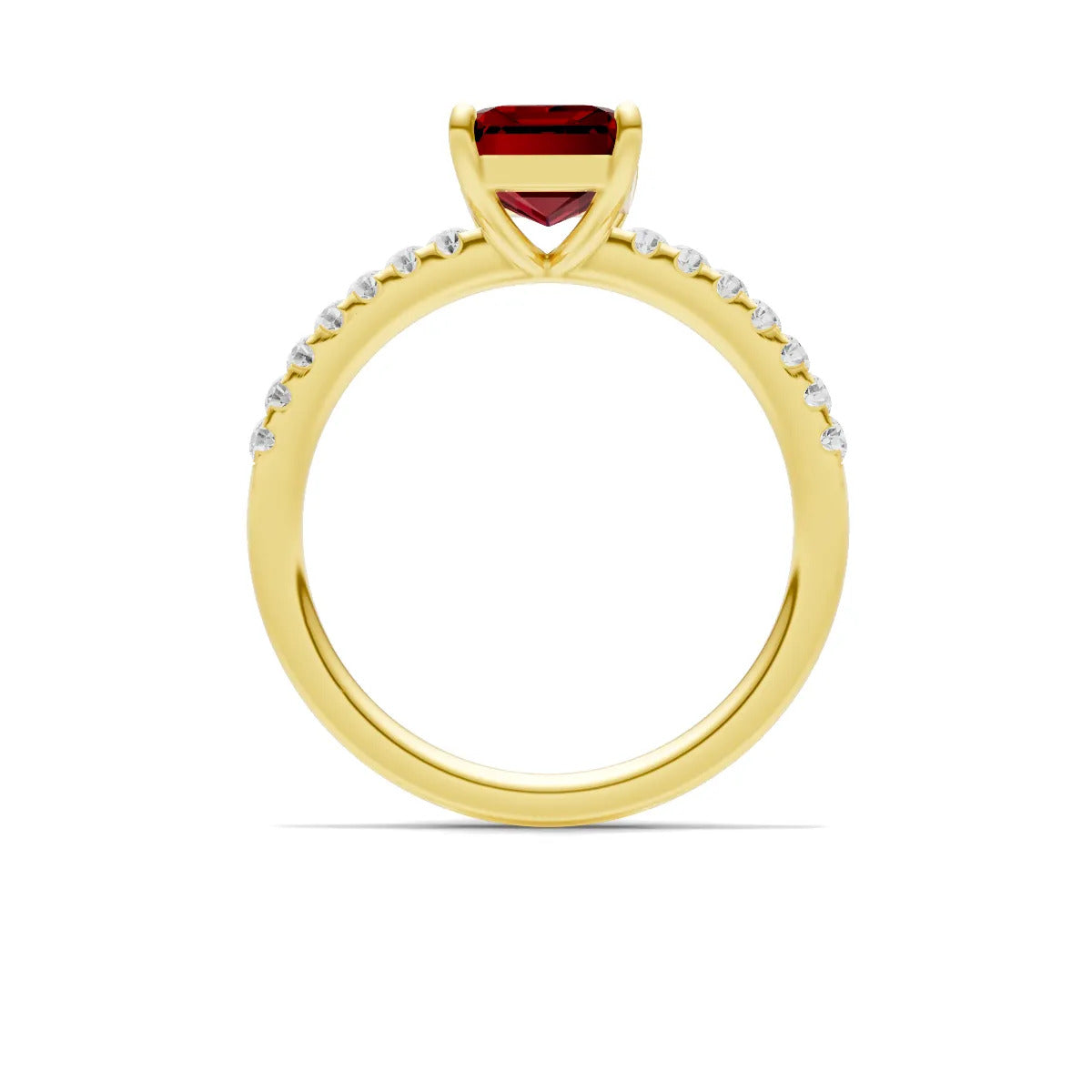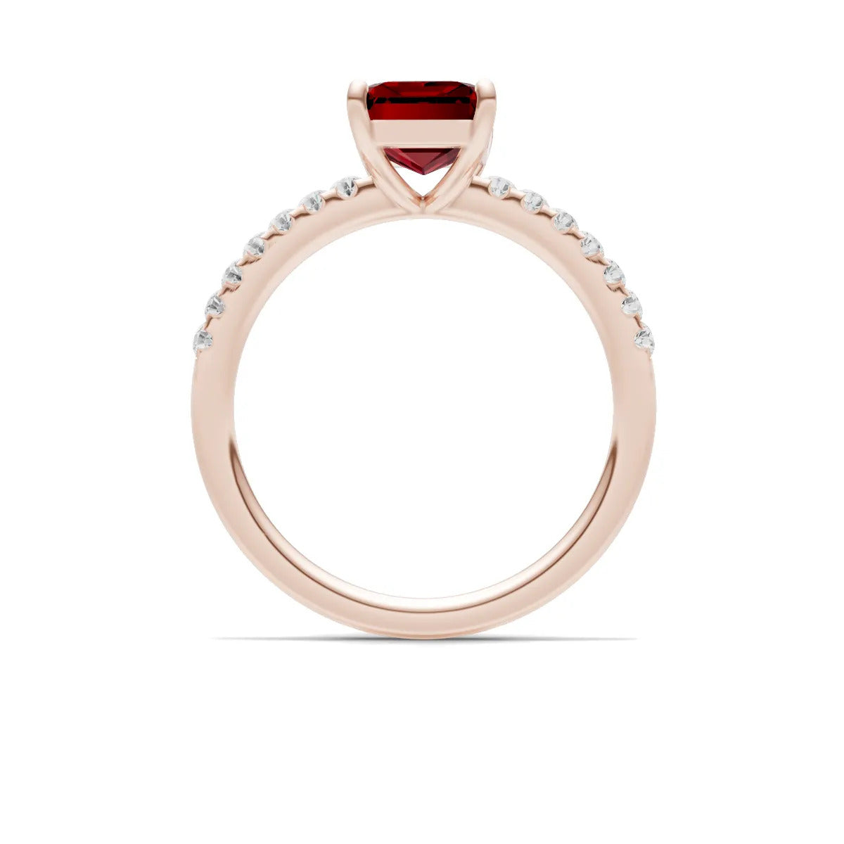Garnet Emerald Cut Solitaire Engagement Ring with Accent