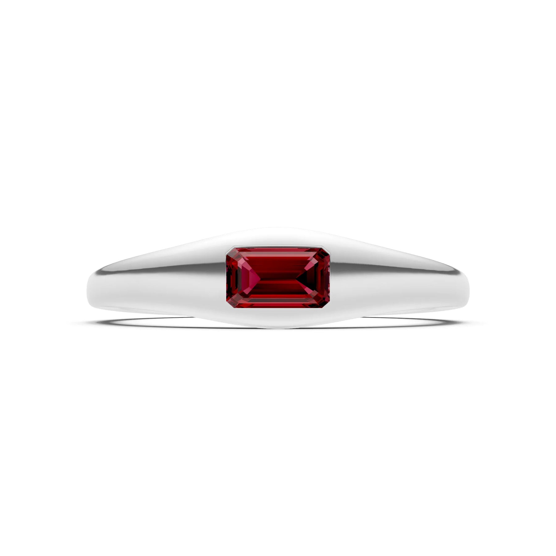 Garnet Flush-Set Emerald Cut Gemstone Mini Signet Ring