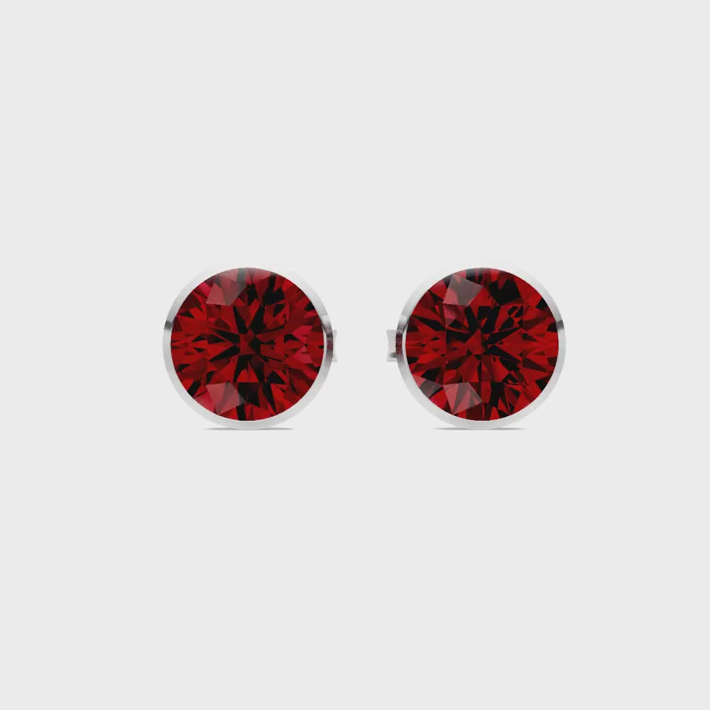 Garnet Round Bezel Earrings - 5mm