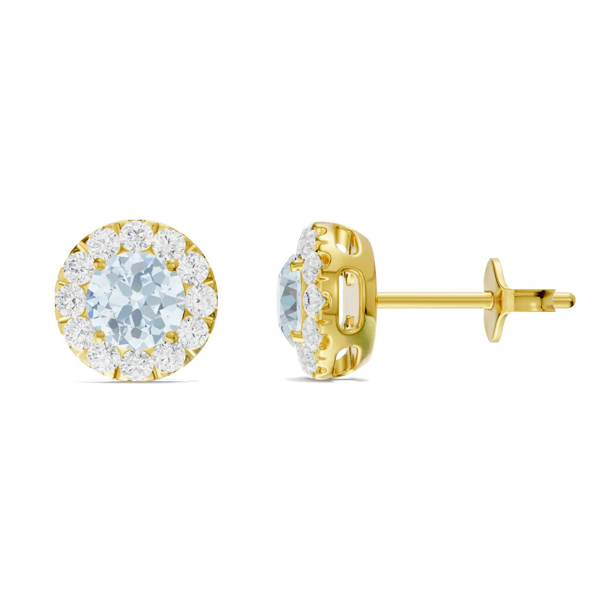 Aquamarine Round Halo Earrings - 4mm