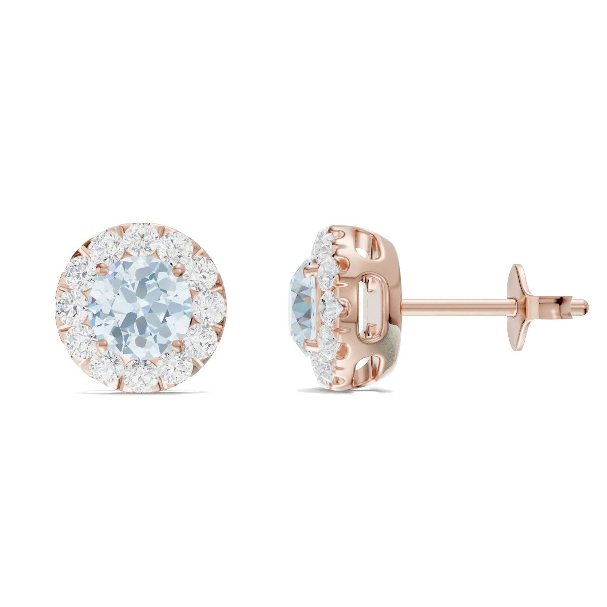 Aquamarine Round Halo Earrings - 5mm