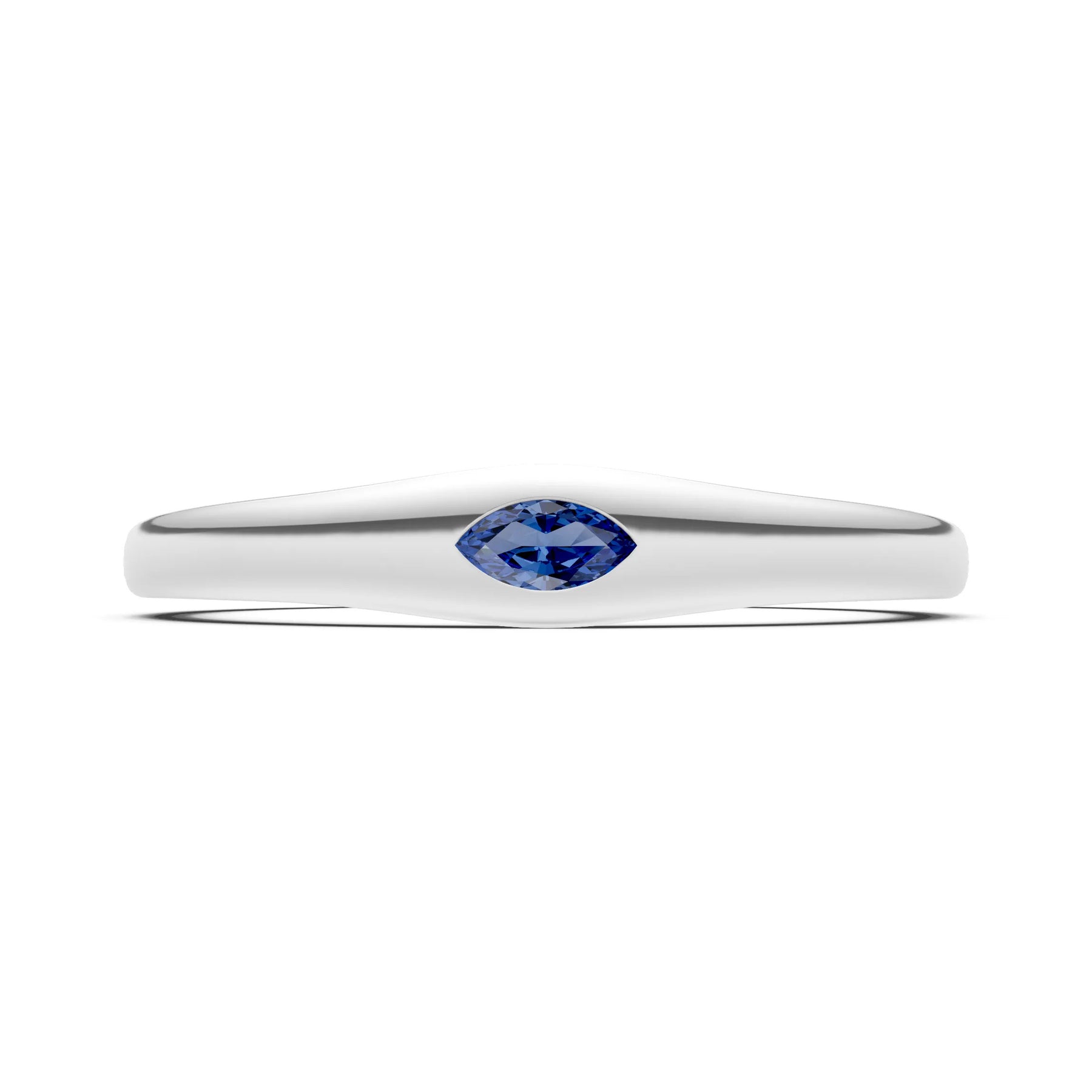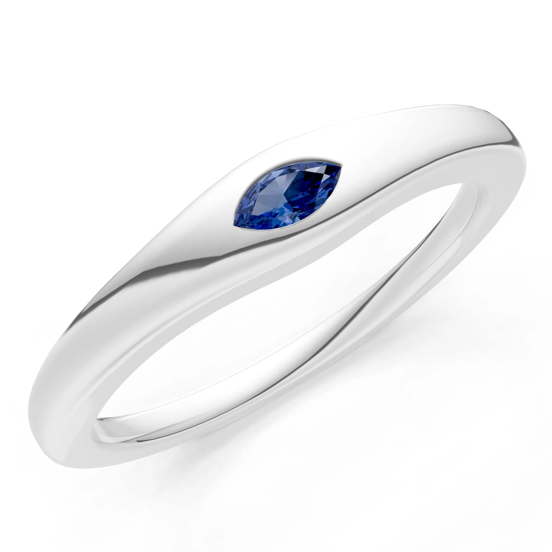 Blue Sapphire Flush-Set Marquise Gemstone Mini Signet Ring