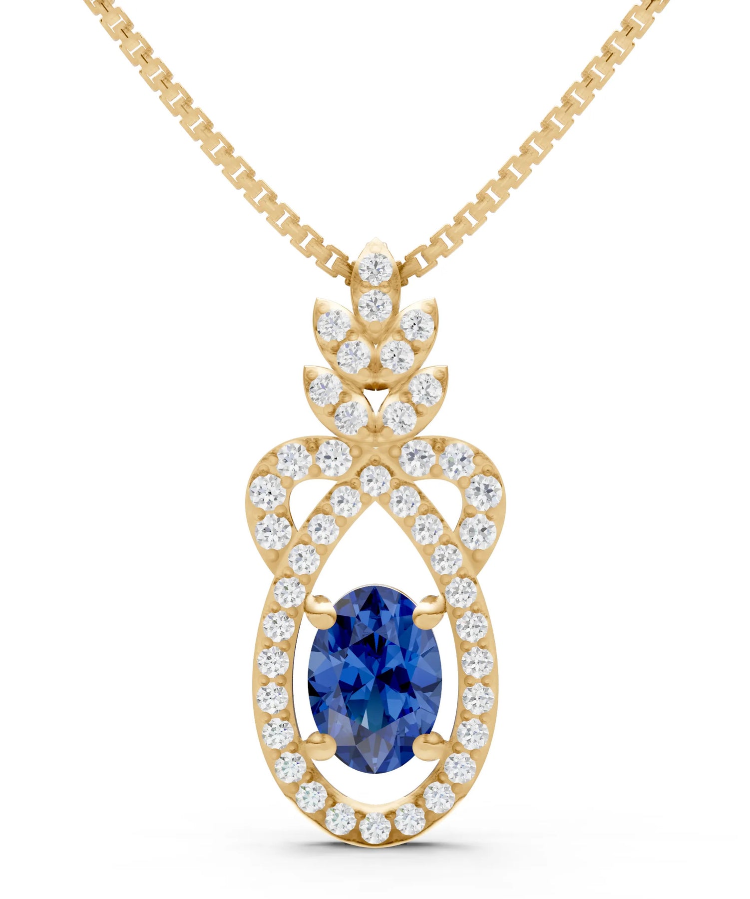 Blue Sapphire Regal Knot Oval Focus Splendor Pendant