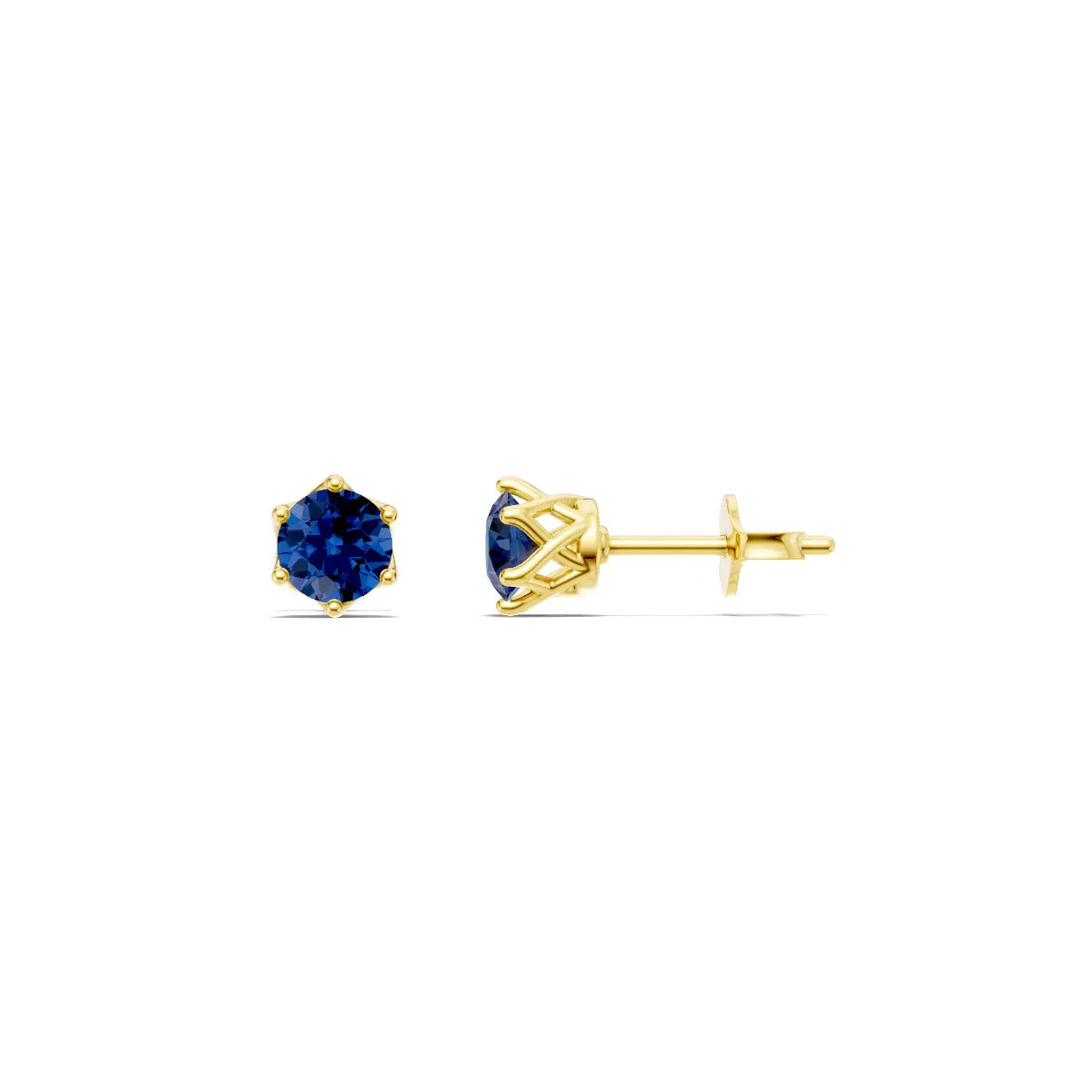 Blue Sapphire Round With 6 Prongs Earrings