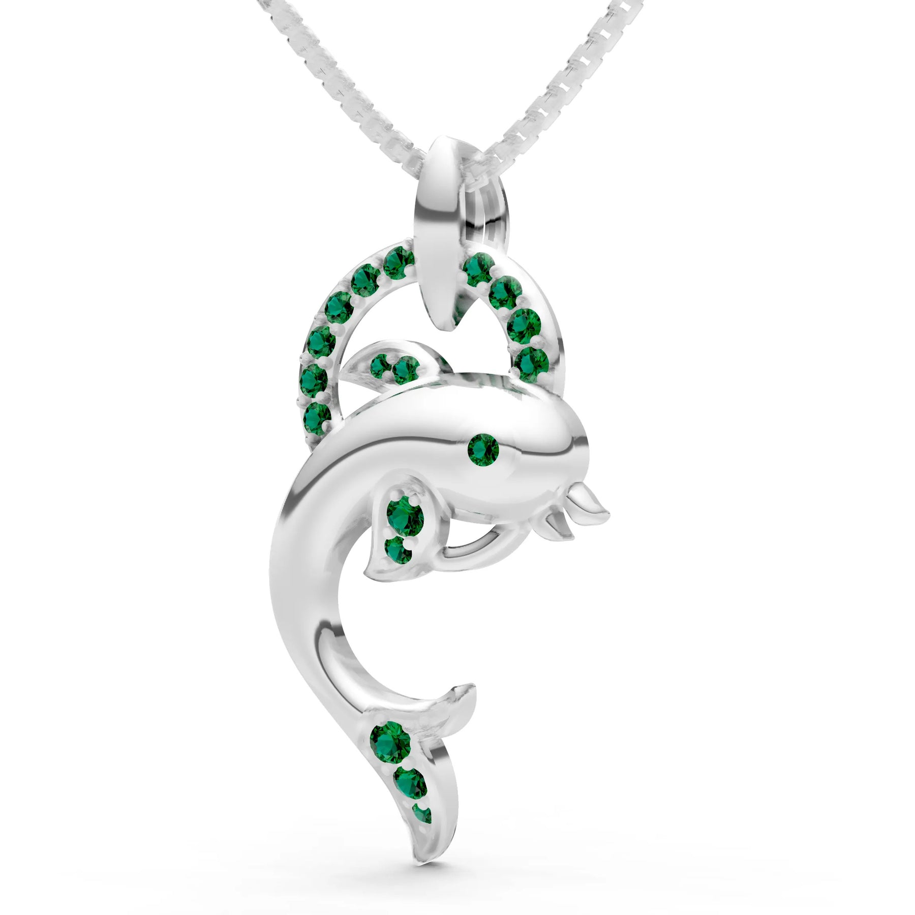 Emerald Dolphin Hoop Pendant