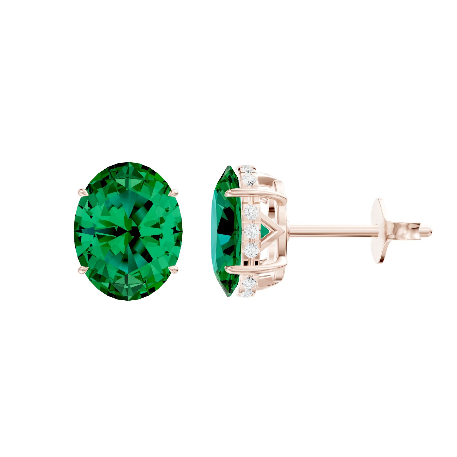 Emerald Hidden Halo Earrings - Oval - 9x7mm