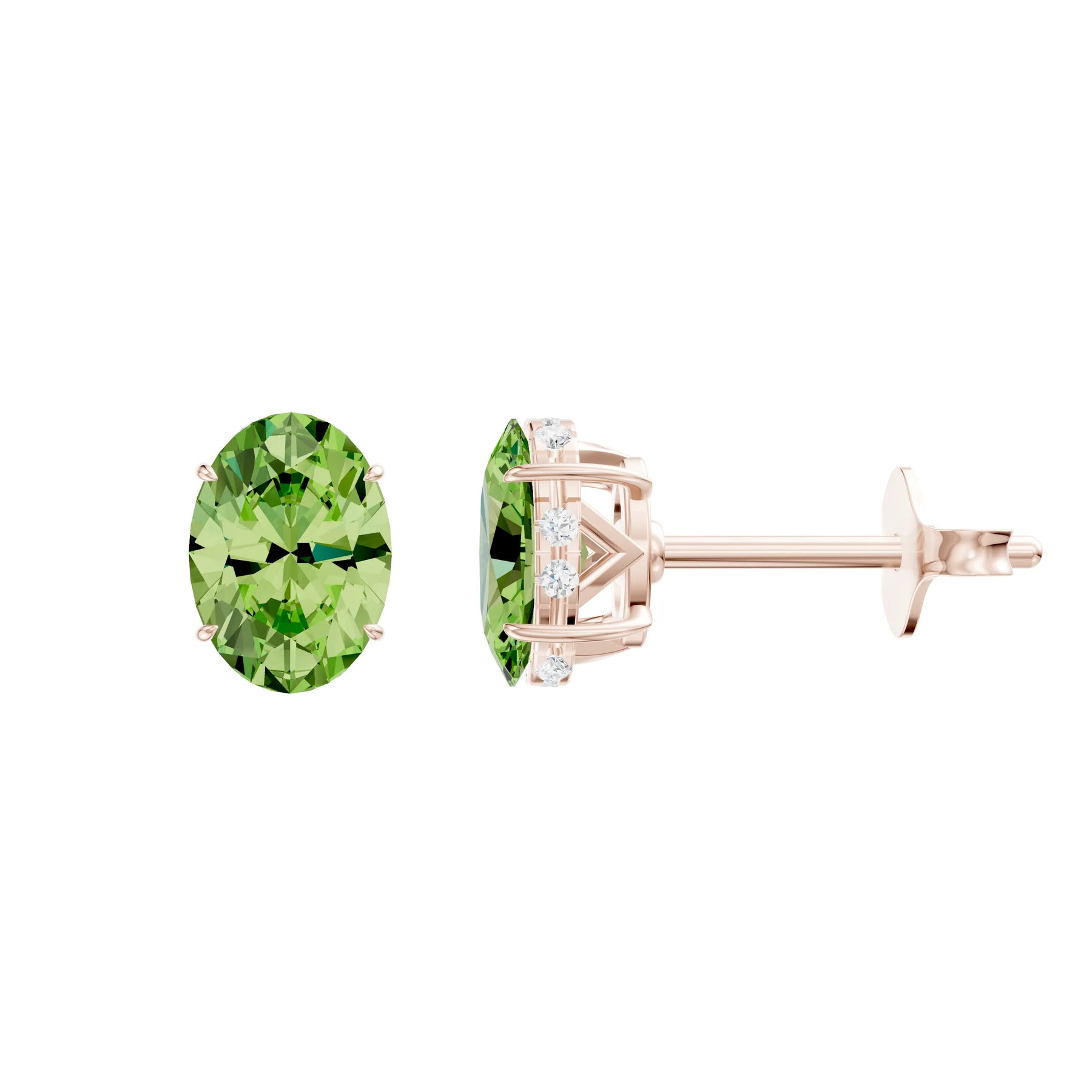 Peridot Hidden Halo Earrings - Oval - 7x5mm
