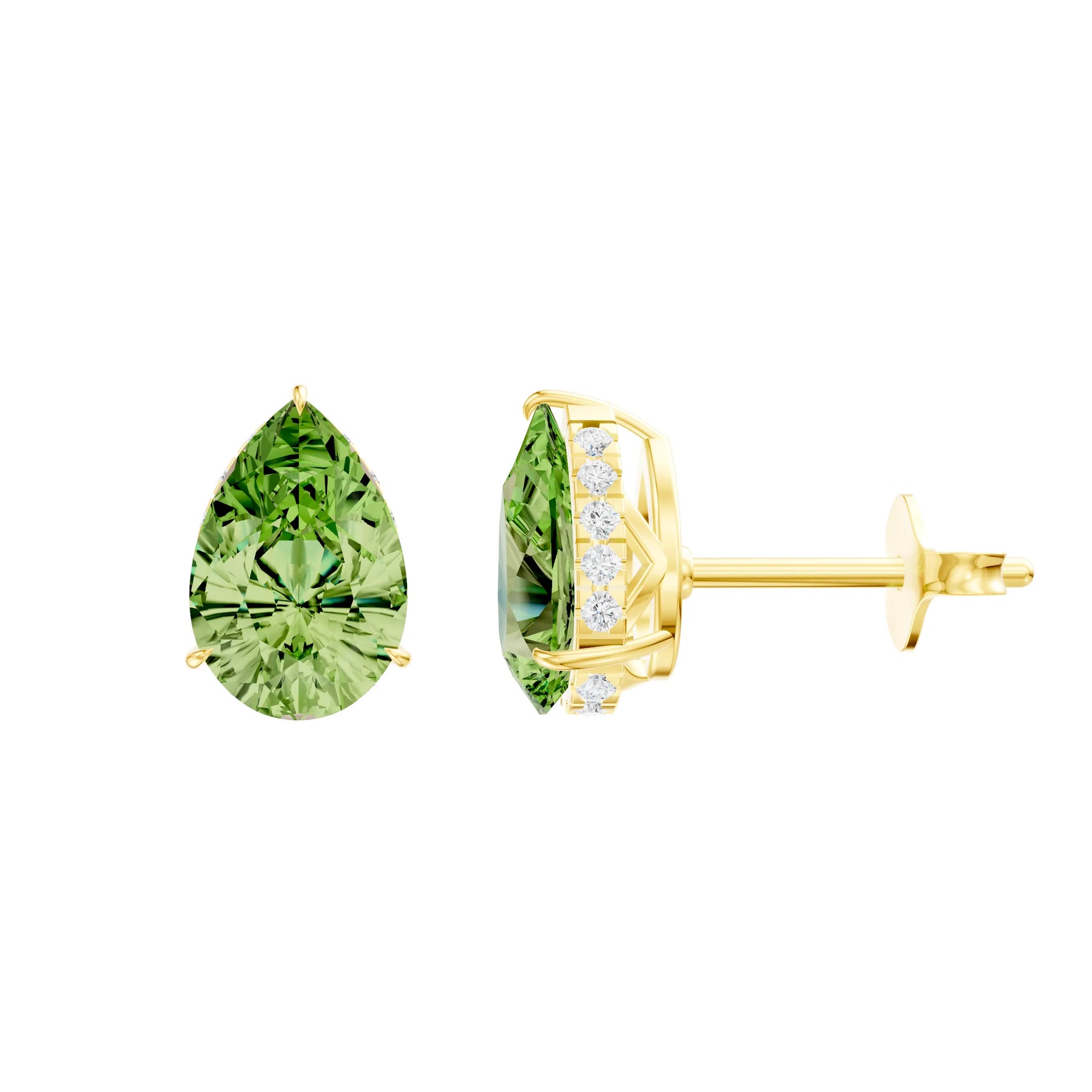 Peridot Hidden Halo Earrings - Pear - 9x6mm