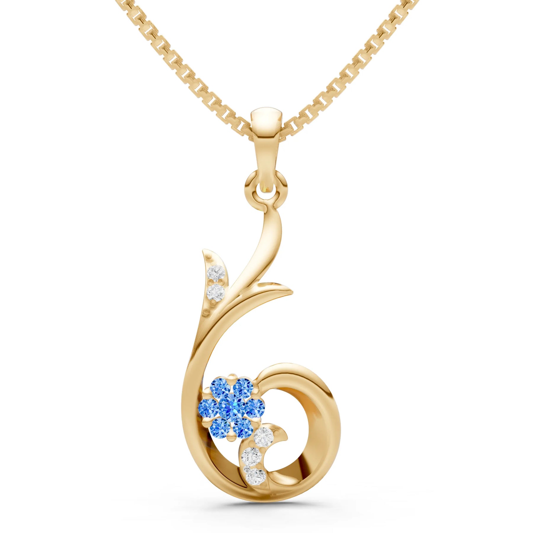 Swiss Blue Topaz Floral Gemstone Swirl Pendant
