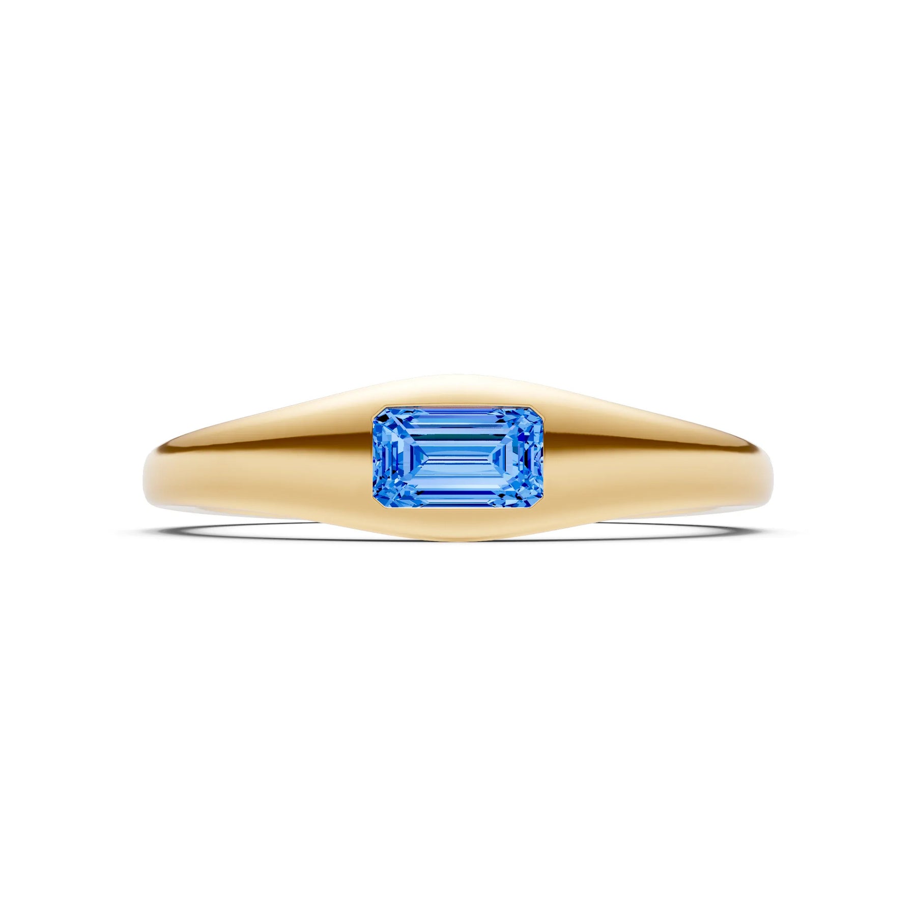 Swiss Blue Topaz Flush-Set Emerald Cut Gemstone Mini Signet Ring