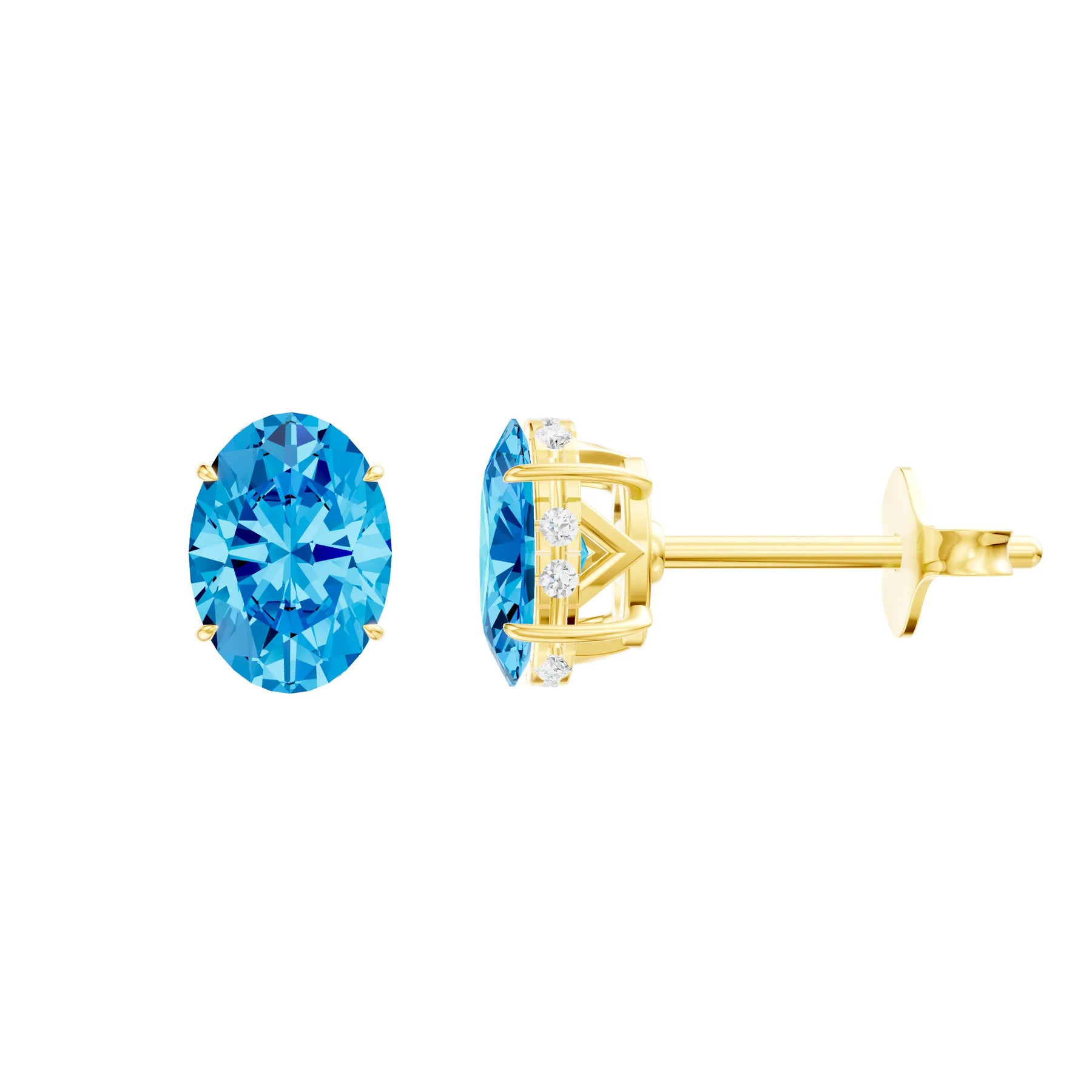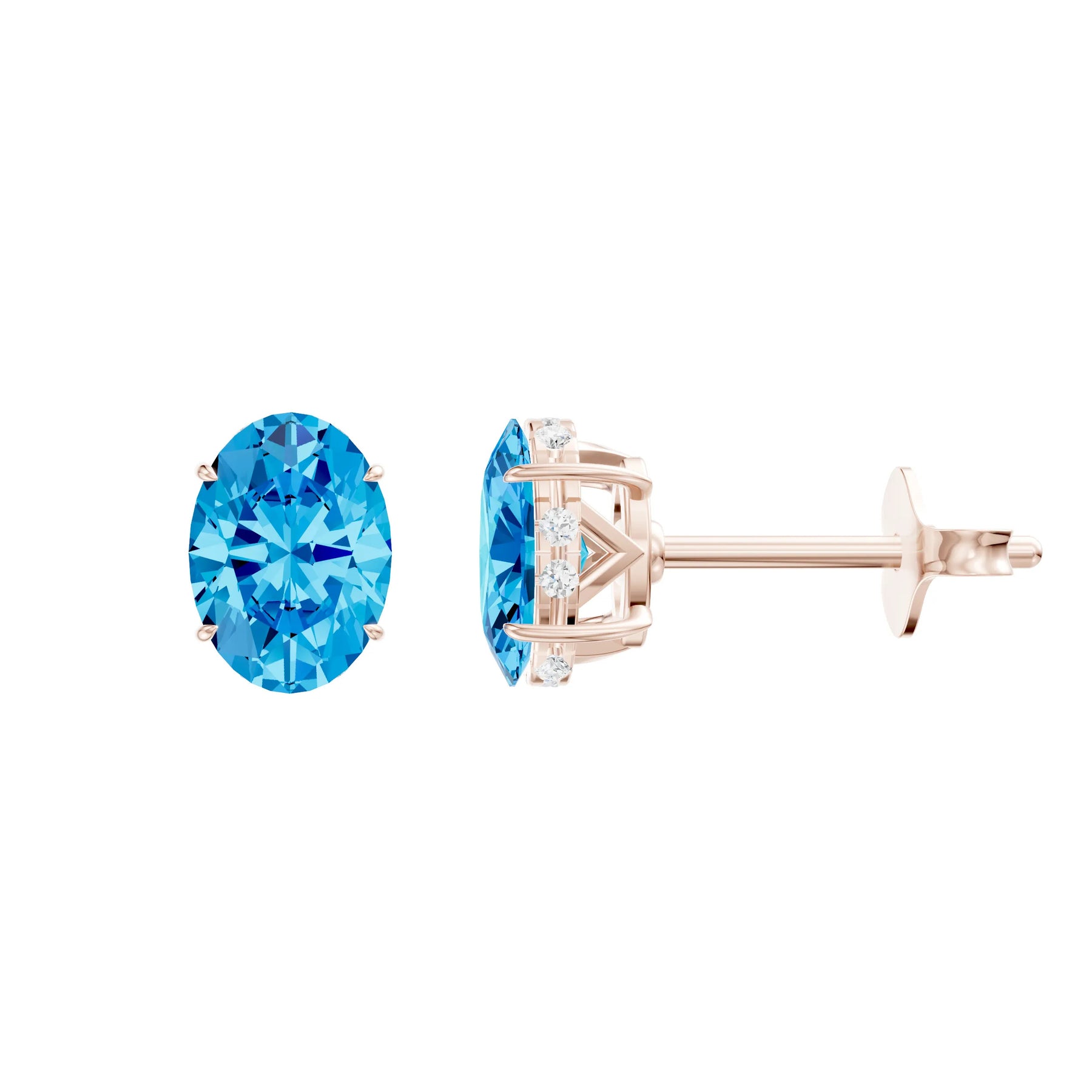 Swiss Blue Topaz Hidden Halo Earrings - Oval - 7x5mm