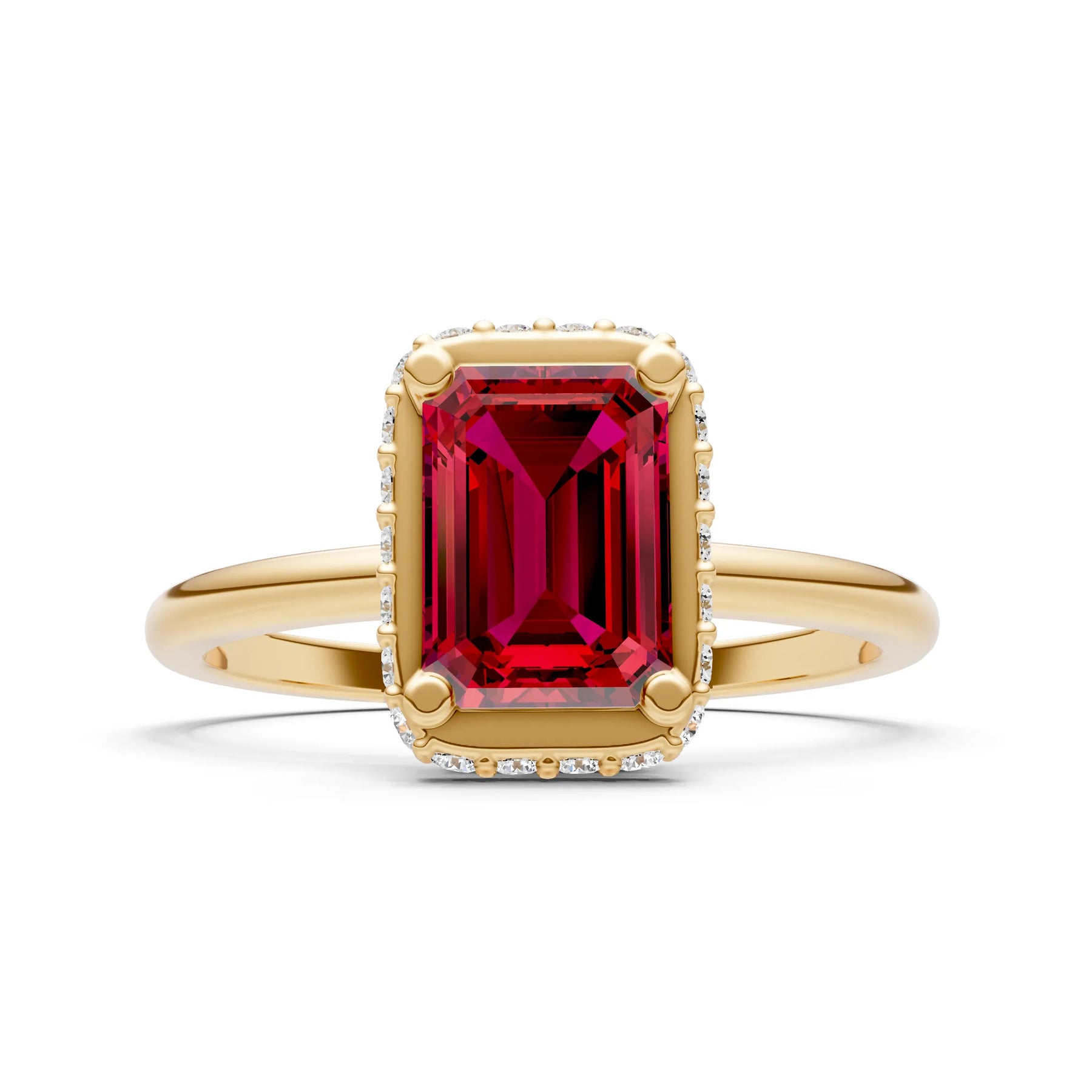 Introducing the stunning Created Ruby, meticulously crafted in your choice of 10k, 14k, or 18k gold, available in White, Yellow, or Rose finishes. This exquisite emerald-cut gemstone, with a total weight of 1.264 carats and VS1 clarity, is a true testament to Peora's commitment to exceptional craftsmanship. Each piece radiates a luxurious charm, showcasing the rich red hue of the ruby that captures and reflects light beautifully. Peora's dedication to responsible sourcing ensures that this captivating jewelry is not only a reflection of style but also a meaningful investment, making it the perfect gift for any occasion. Every Peora creation arrives in a luxurious gift box, ready for gifting or safekeeping.