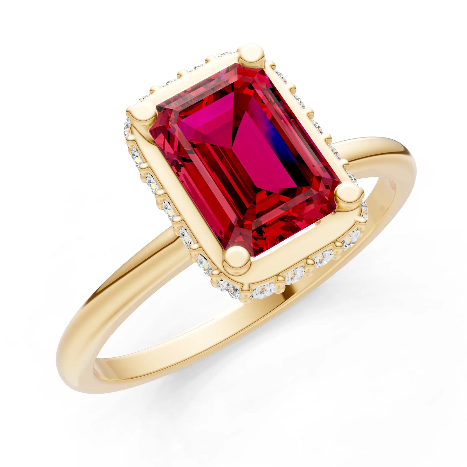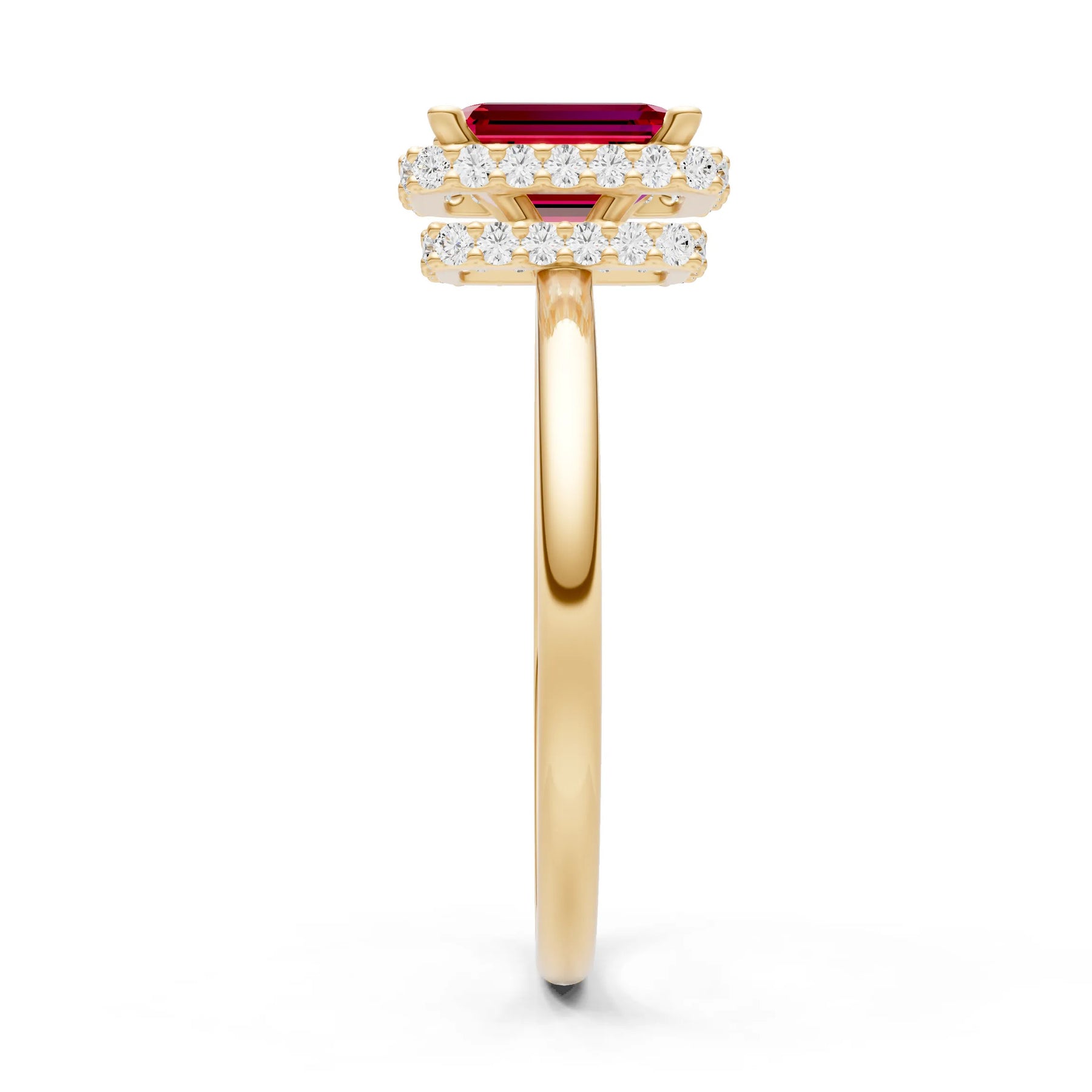Ruby Emerald Hidden Double Halo Engagement Ring