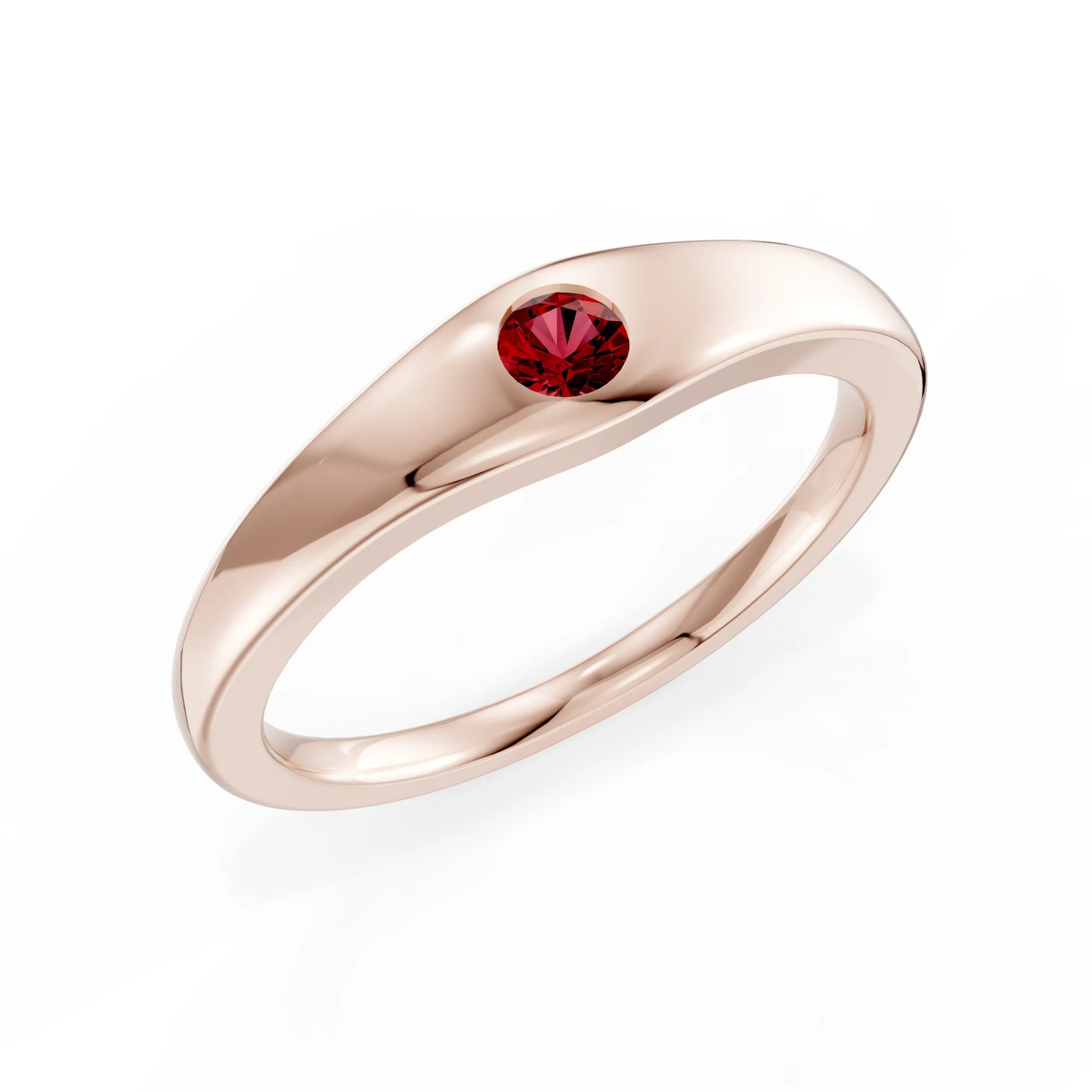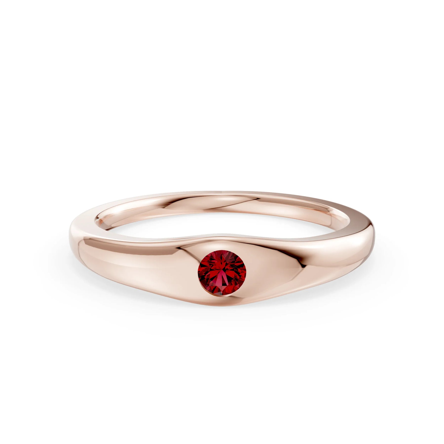 Ruby Flush-Set Round Gemstone Mini Signet Ring