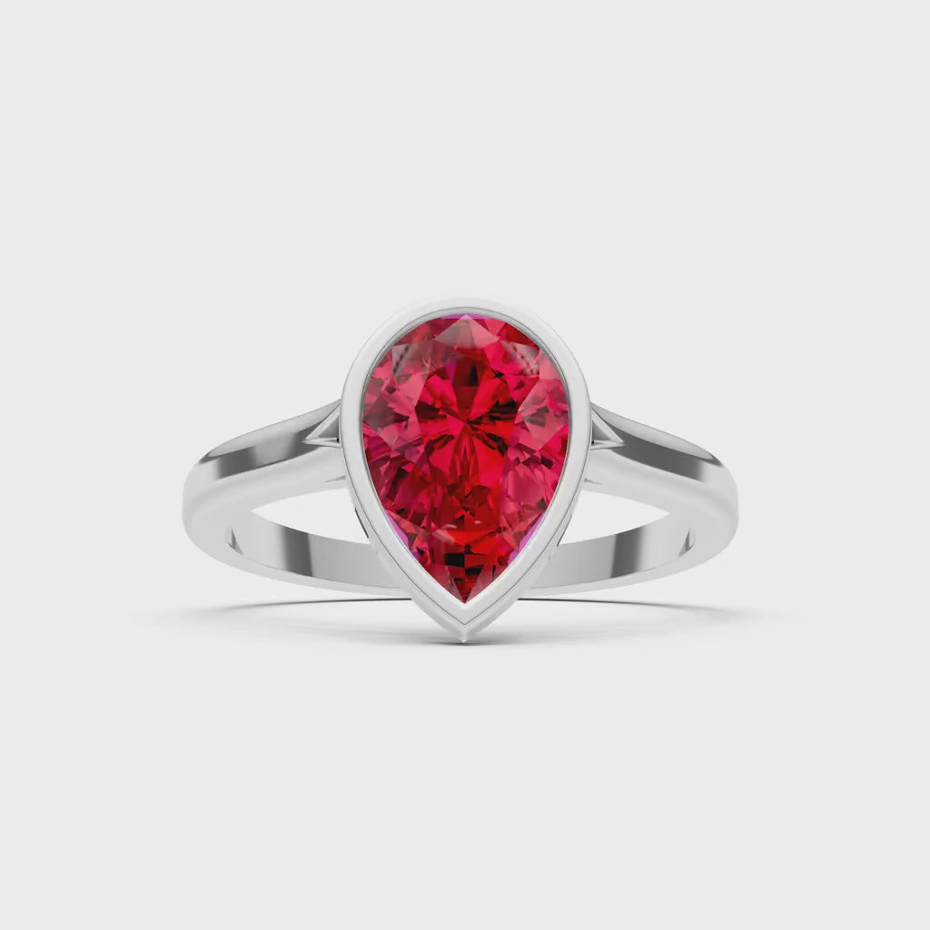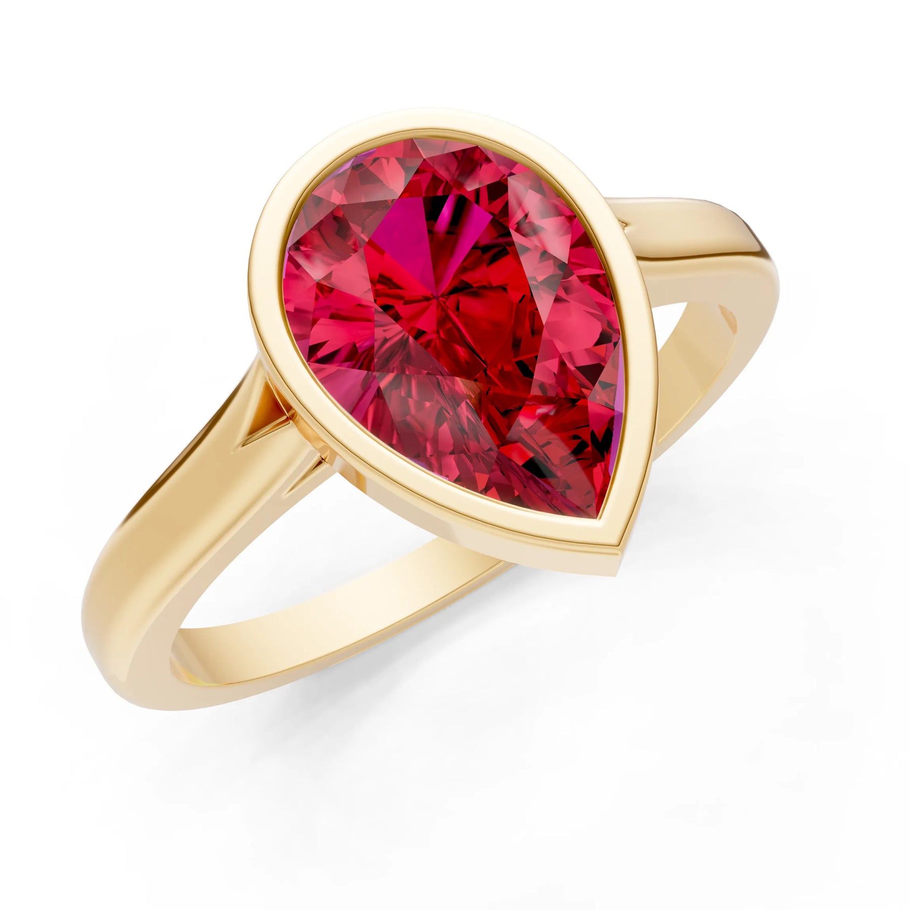 Ruby Pear Shape Bezel Set Solitaire Ring