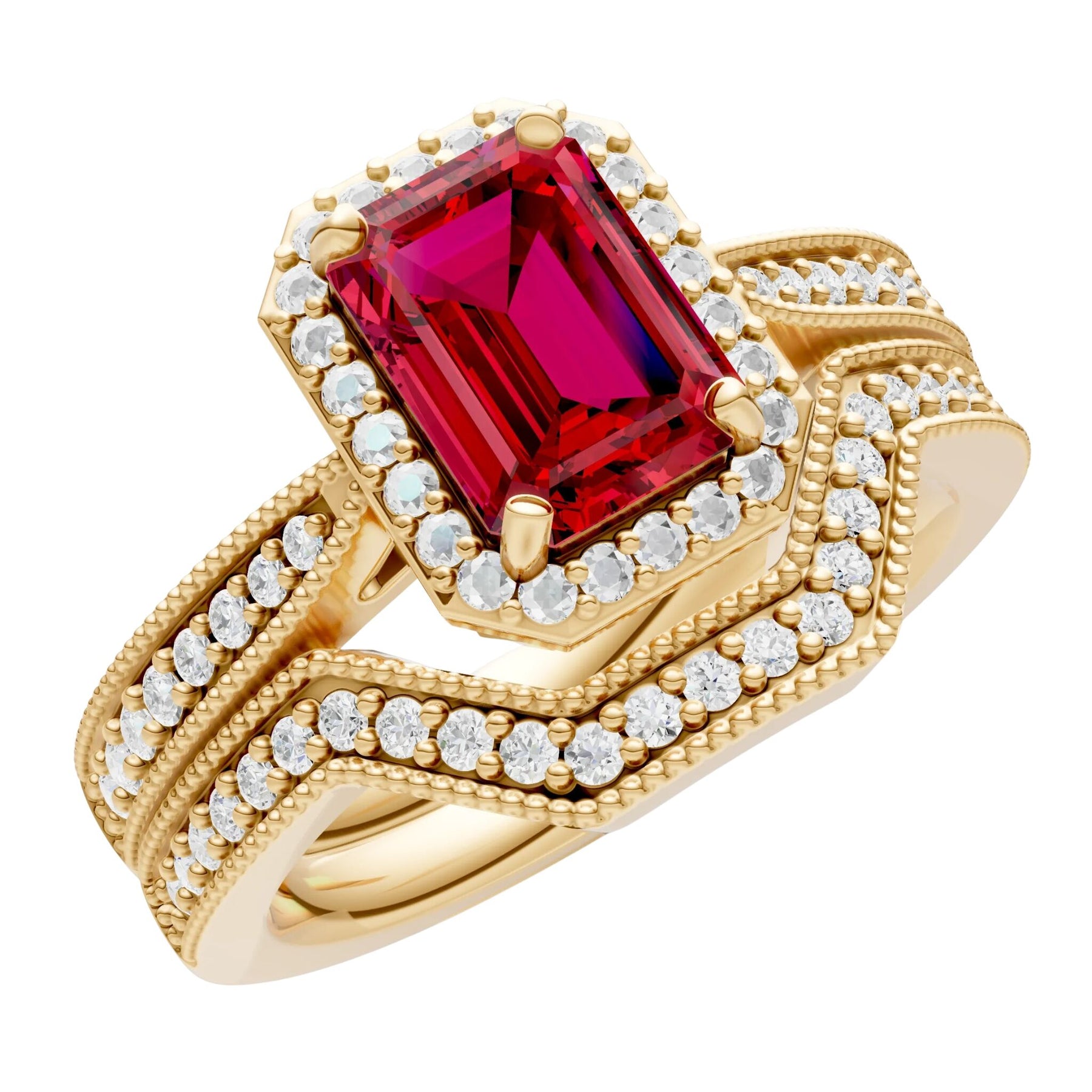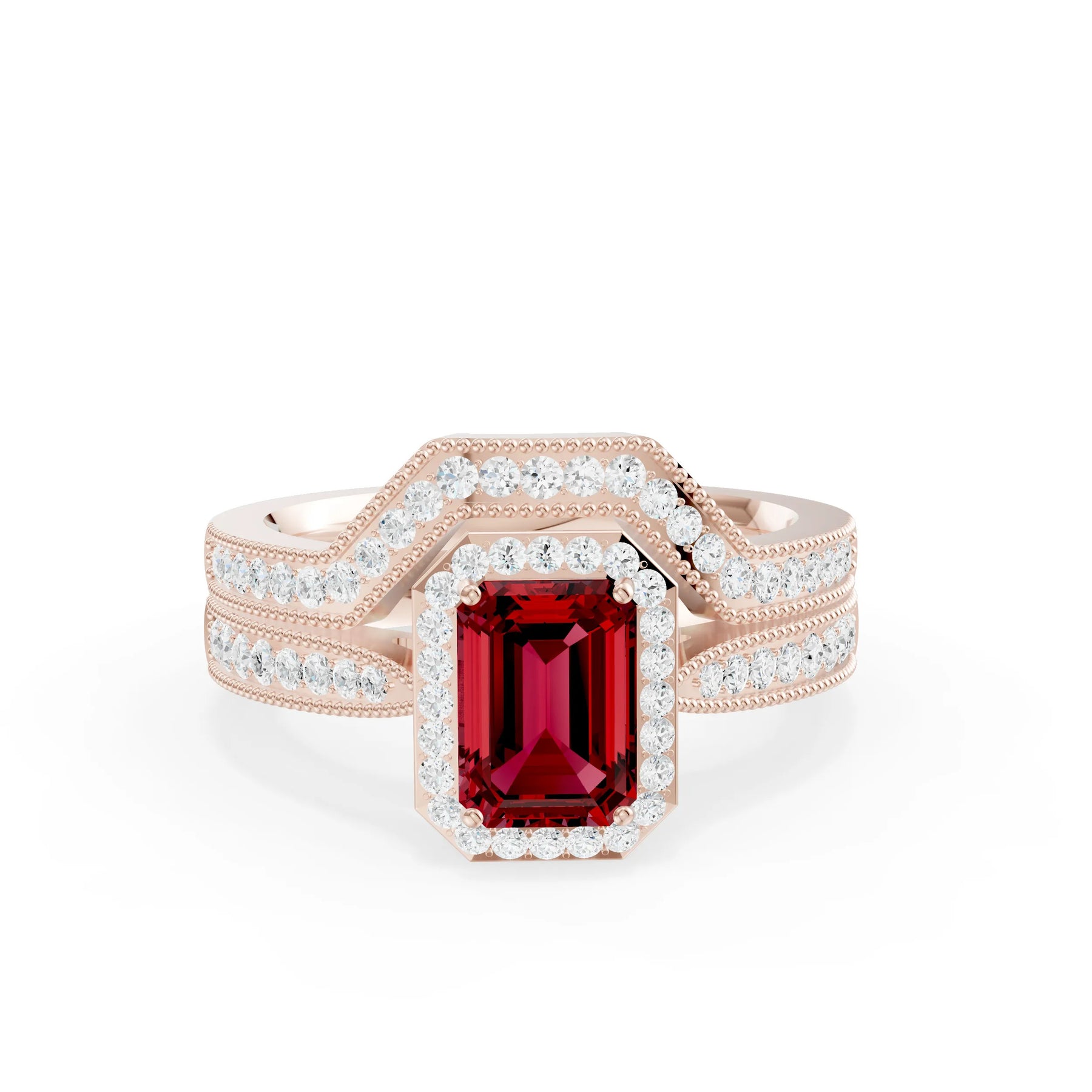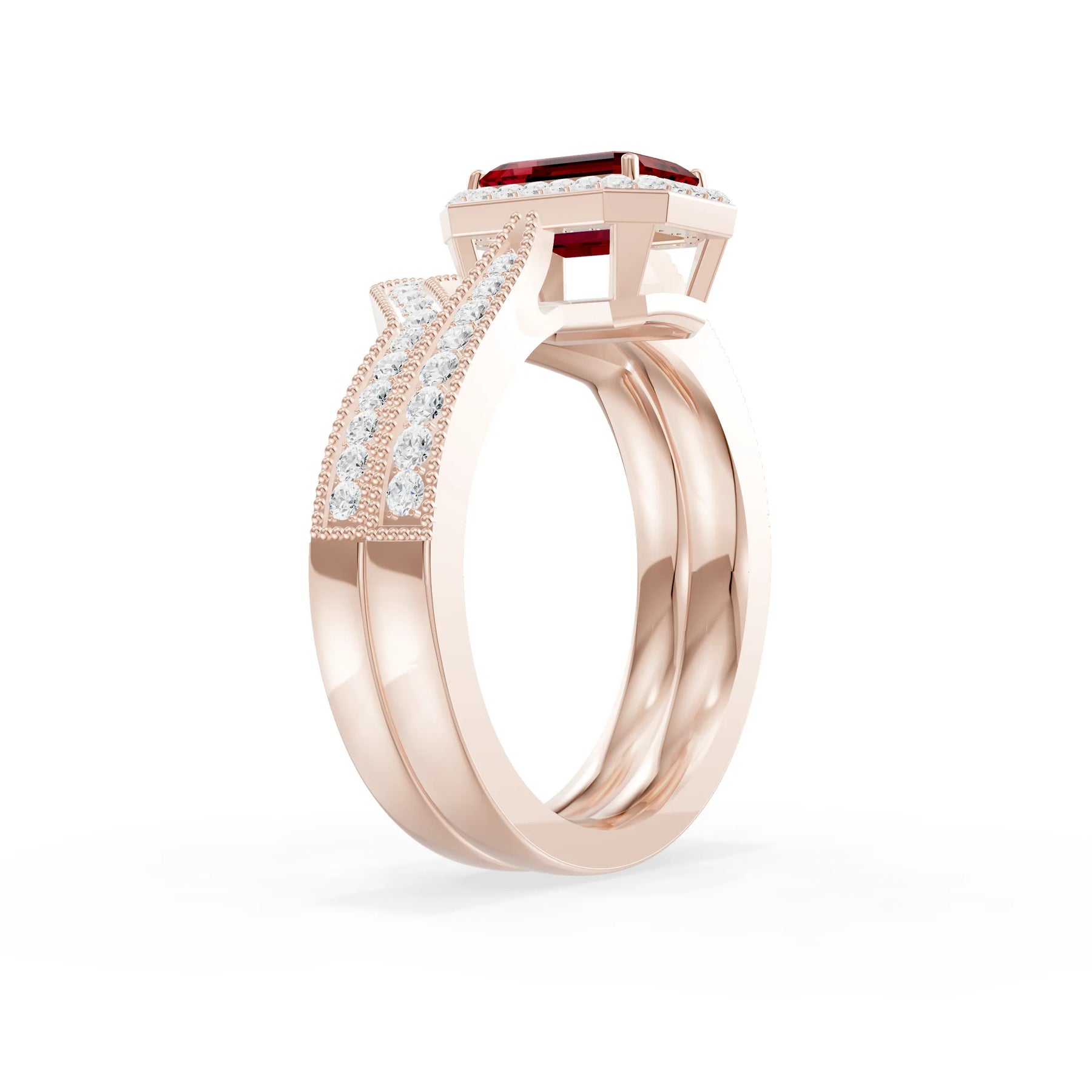 Ruby Petitie Vintage Inspired Milgrain Ring Set
