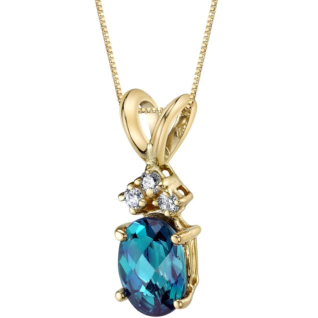 This standout pendant features oval shape Peora created Alexandrite gemstones in 14K yellow gold.