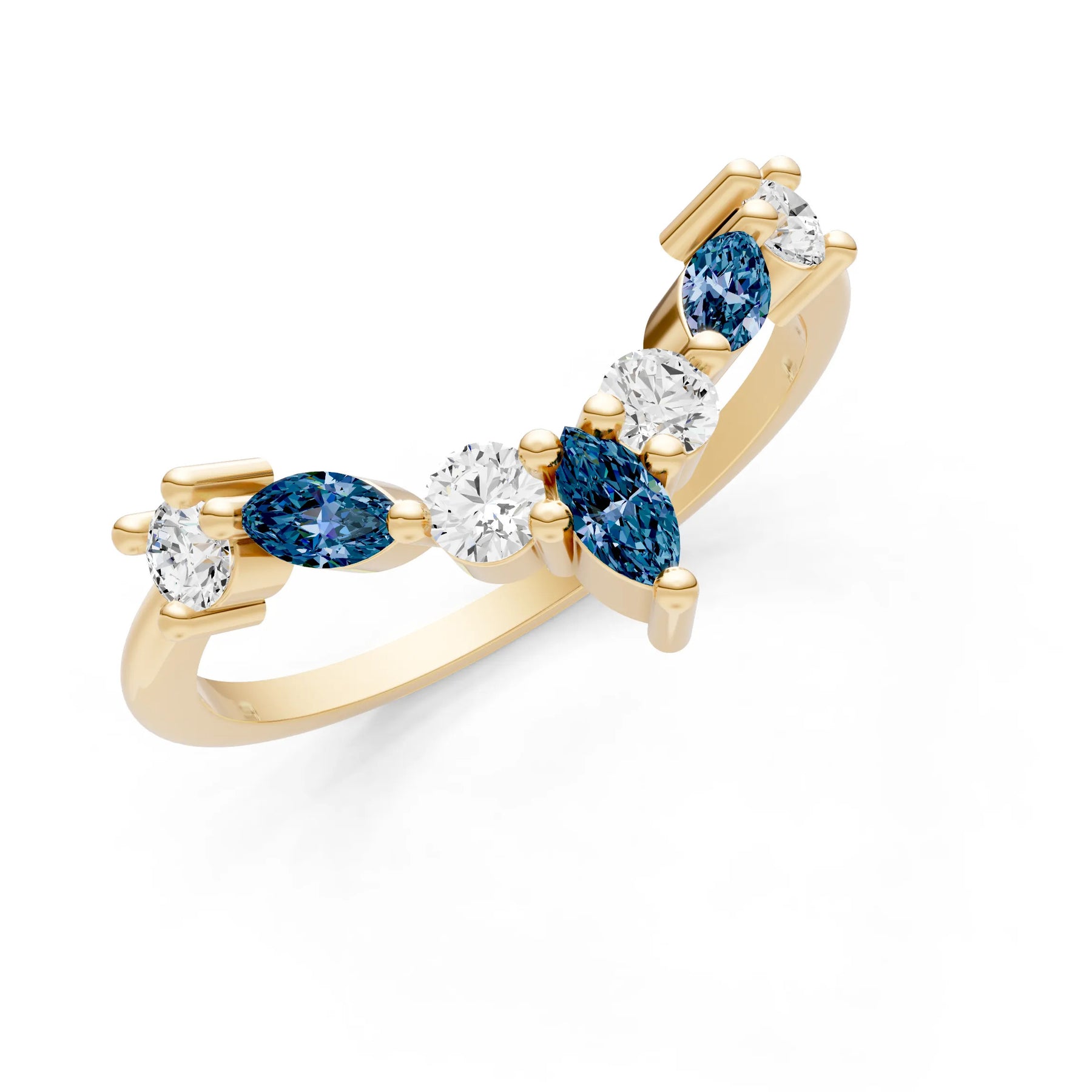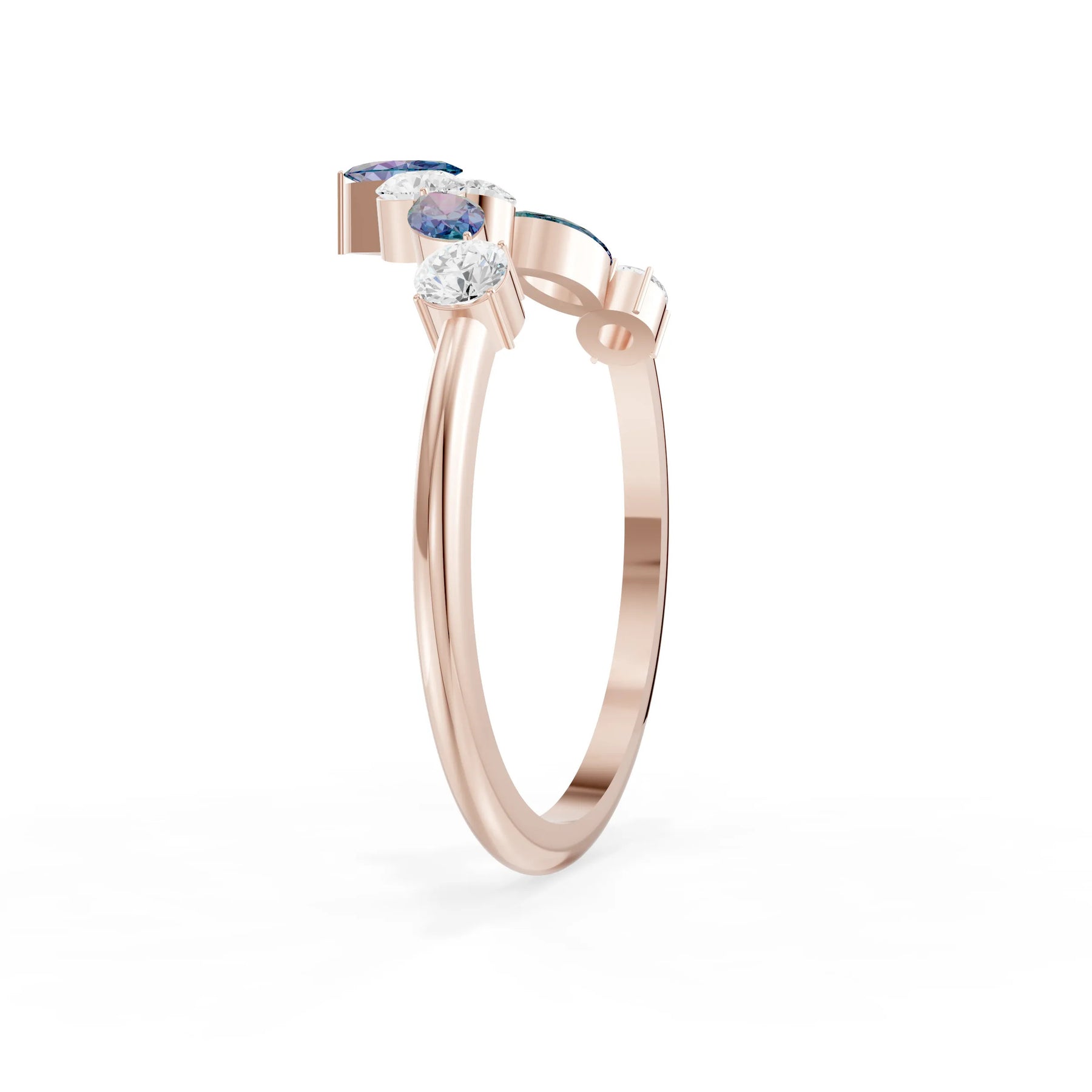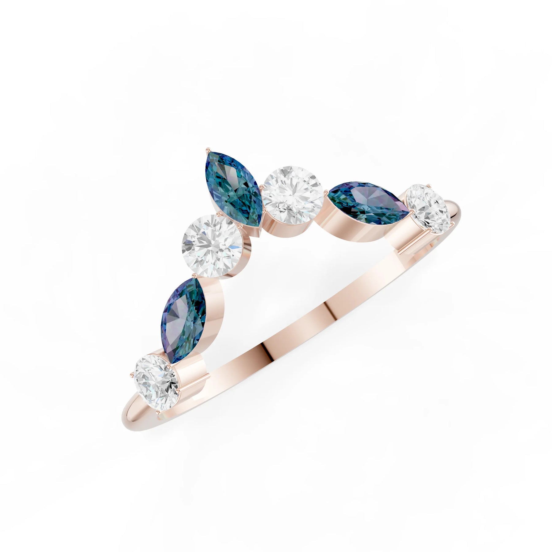 Alexandrite Round and  Marquise Chevron Wedding Ring