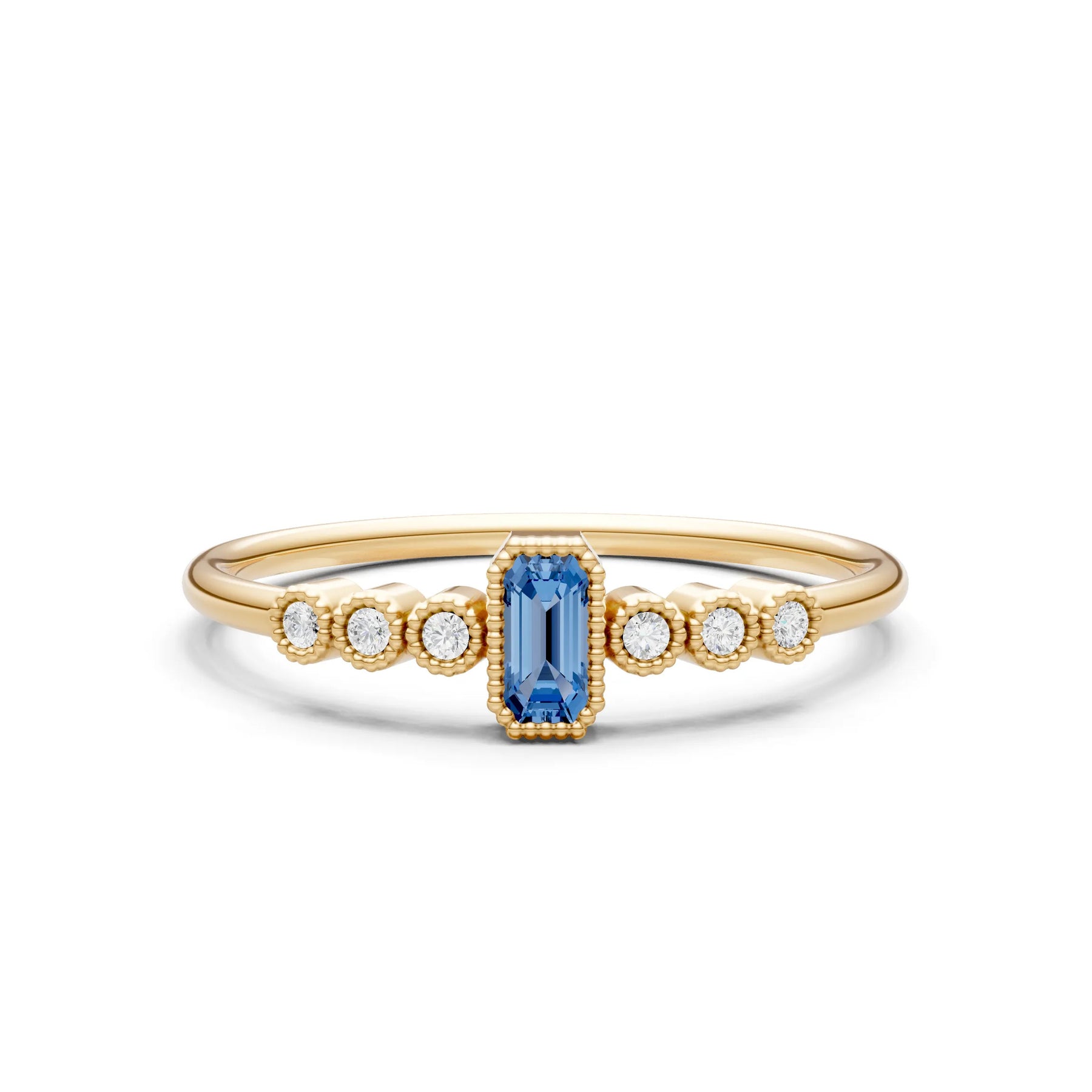London Blue Topaz Dainty Bezel Emerald Set Cluster Ring