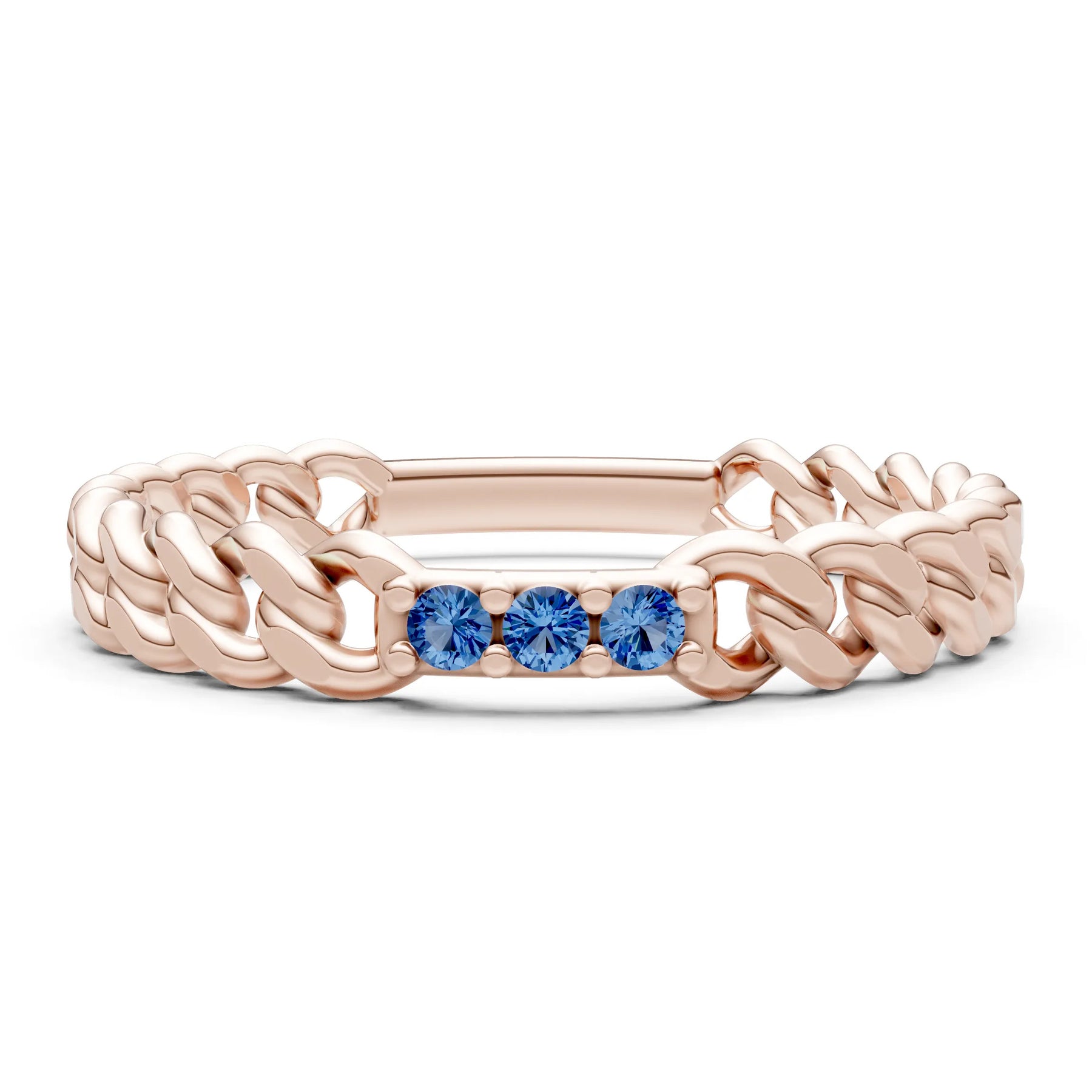 London Blue Topaz Dainty Chain Link 3-Stone Ring