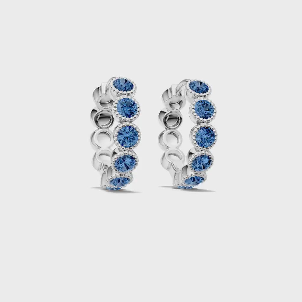 London Blue Topaz Round Bezel Huggies Earrings with Milgrain