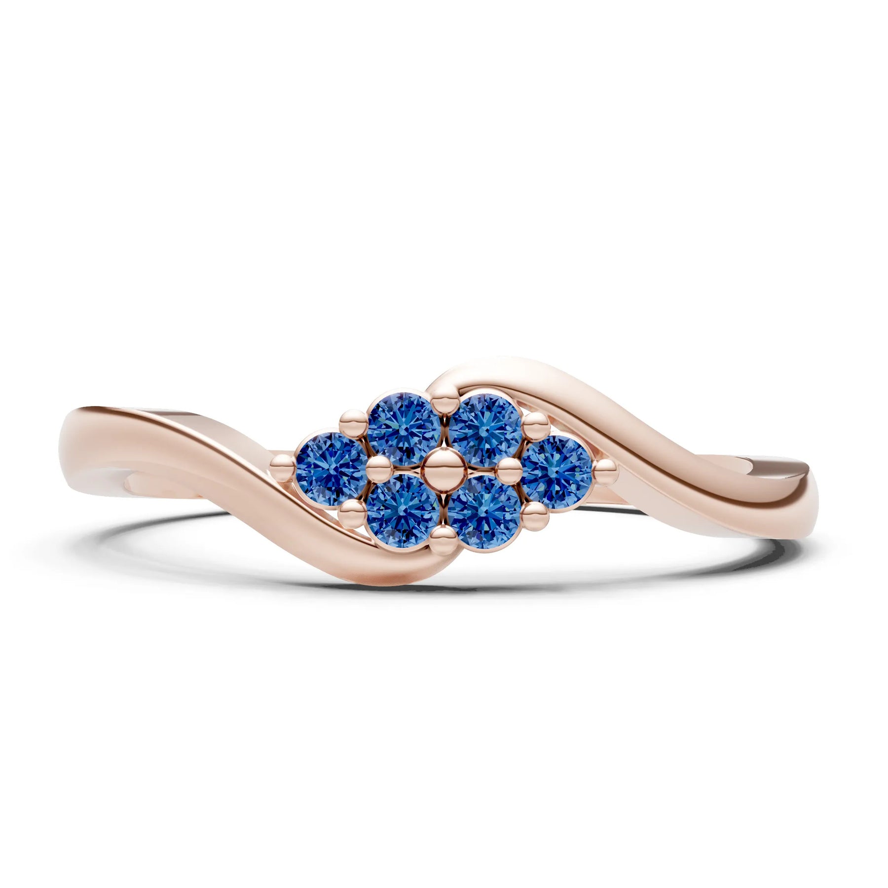 London Blue Topaz Wave Cluster Prong Ring - Round