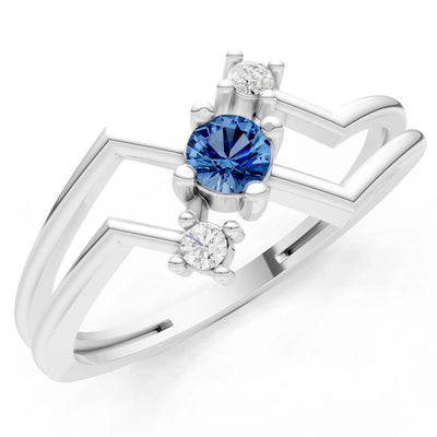 London Blue Topaz Dainty Initial Letter Birthstone Open Ring – V